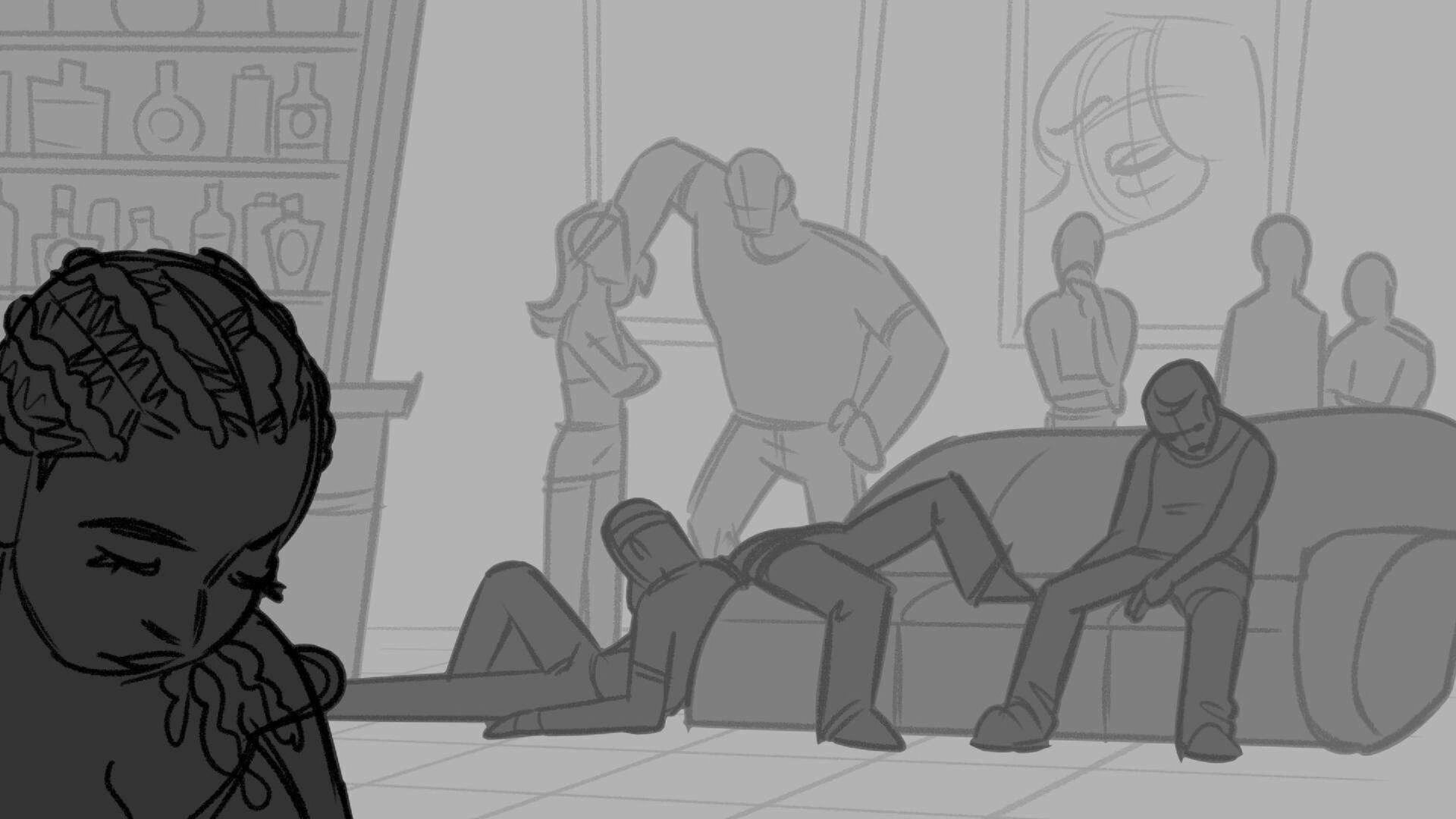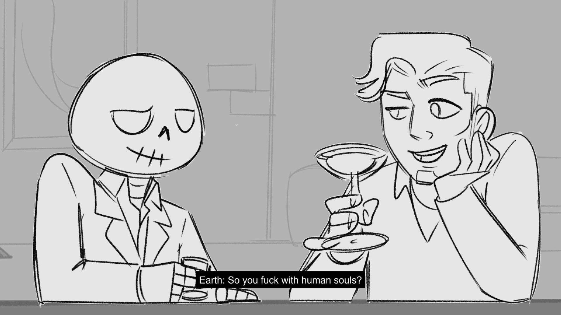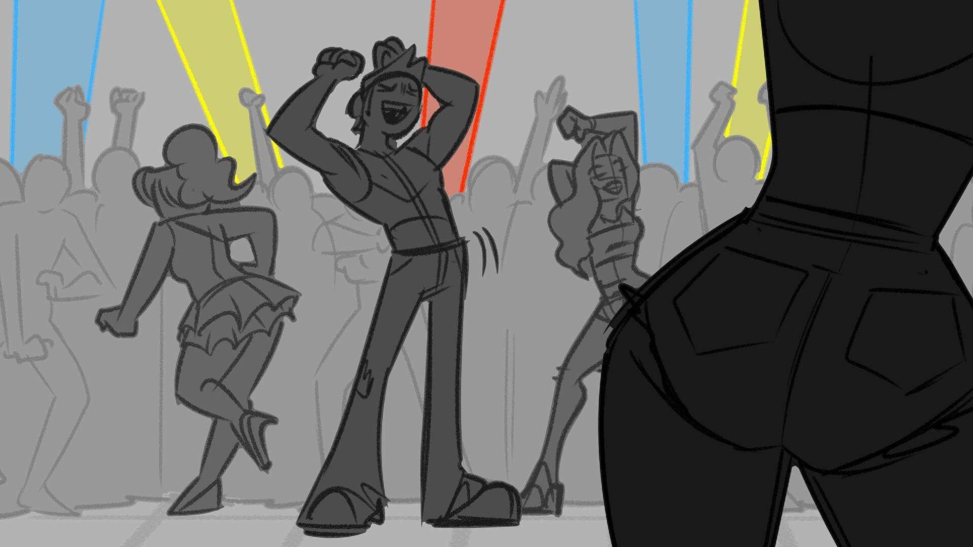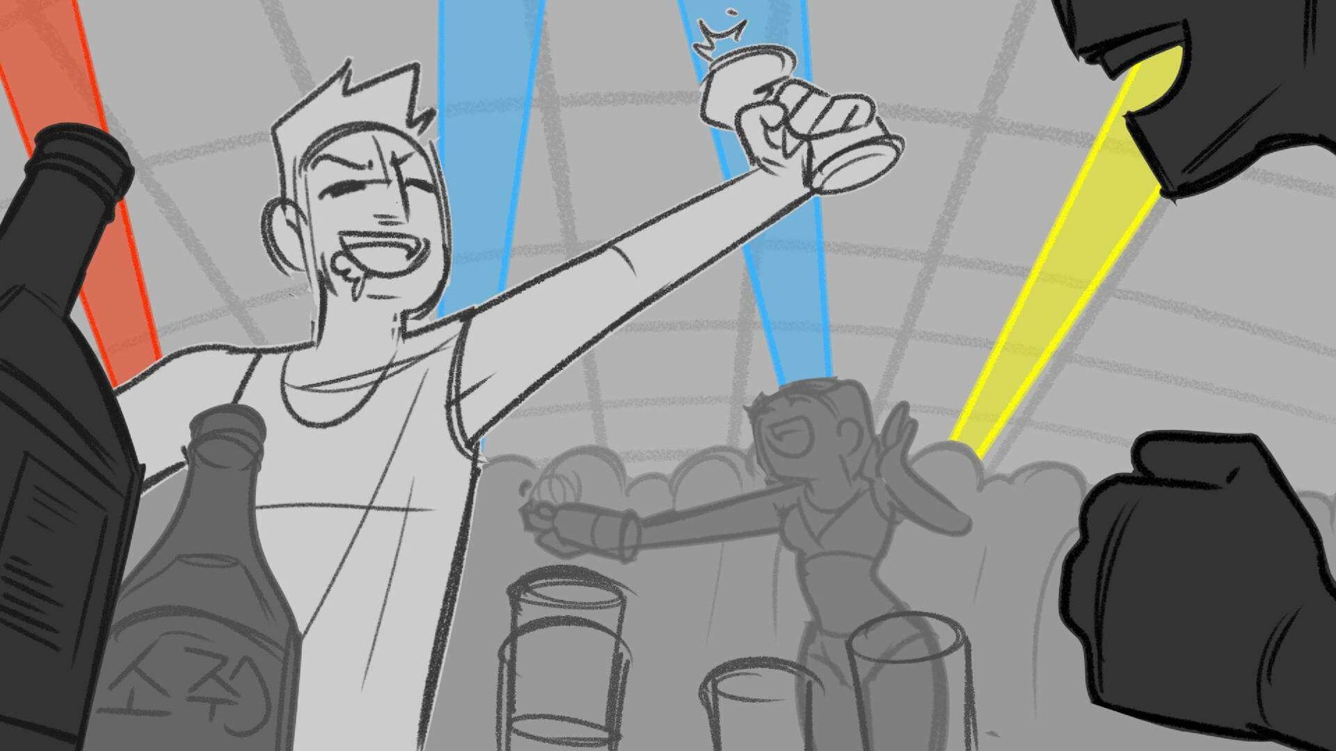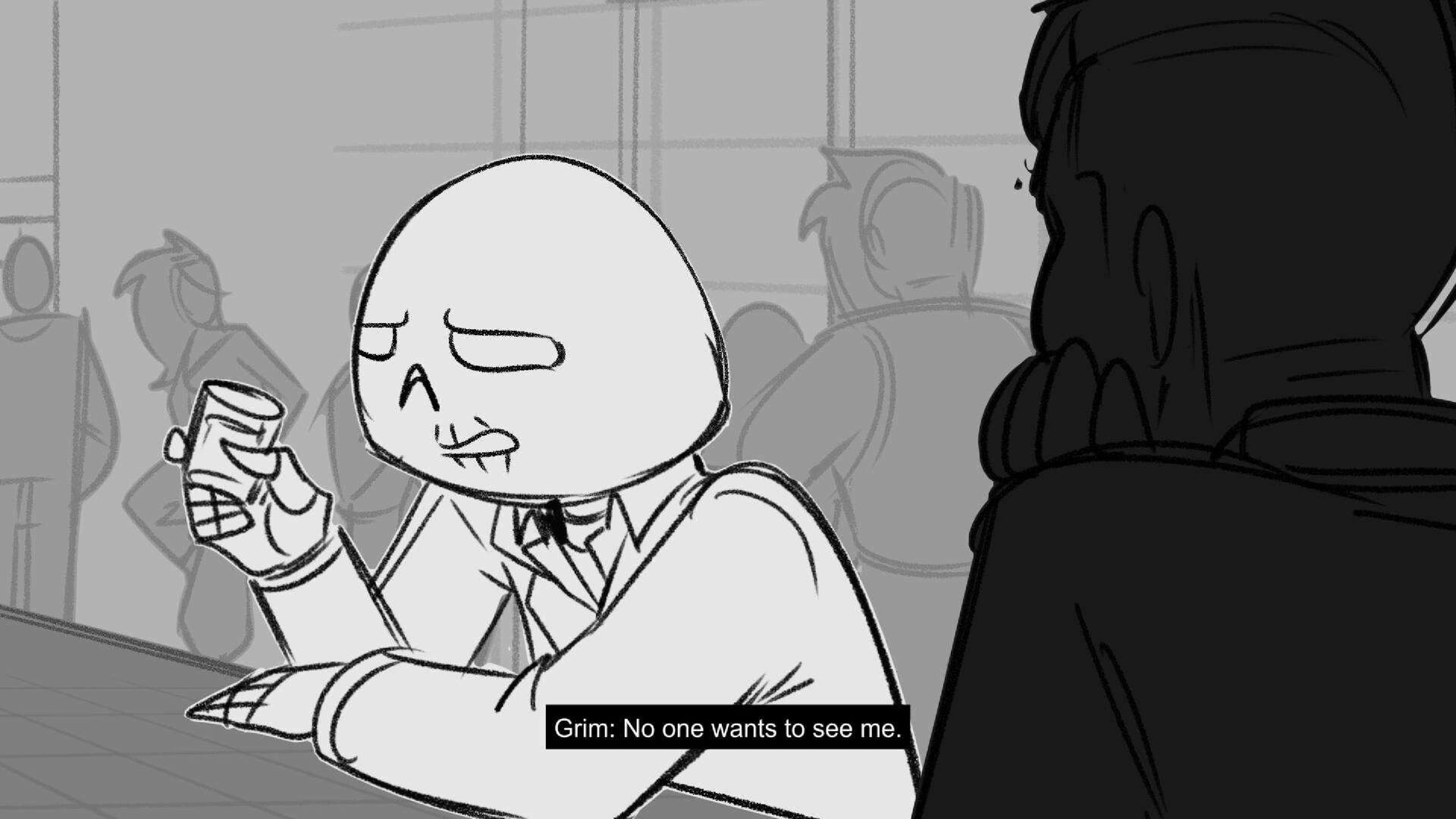 Sequence of the influencers, characters having fun, and tiring themselves out at a club. And a heart-felt conversation between Grim and Earth.