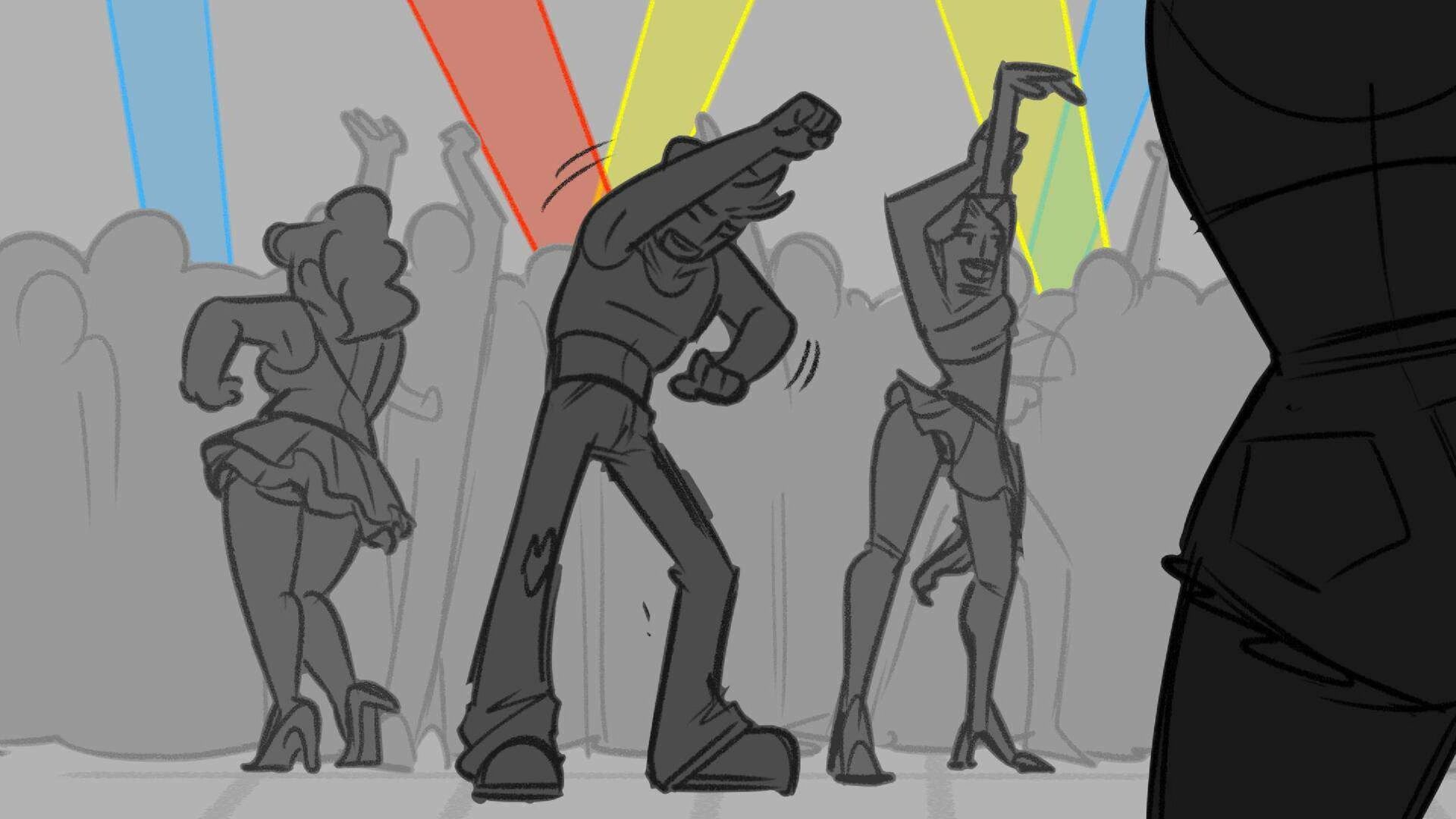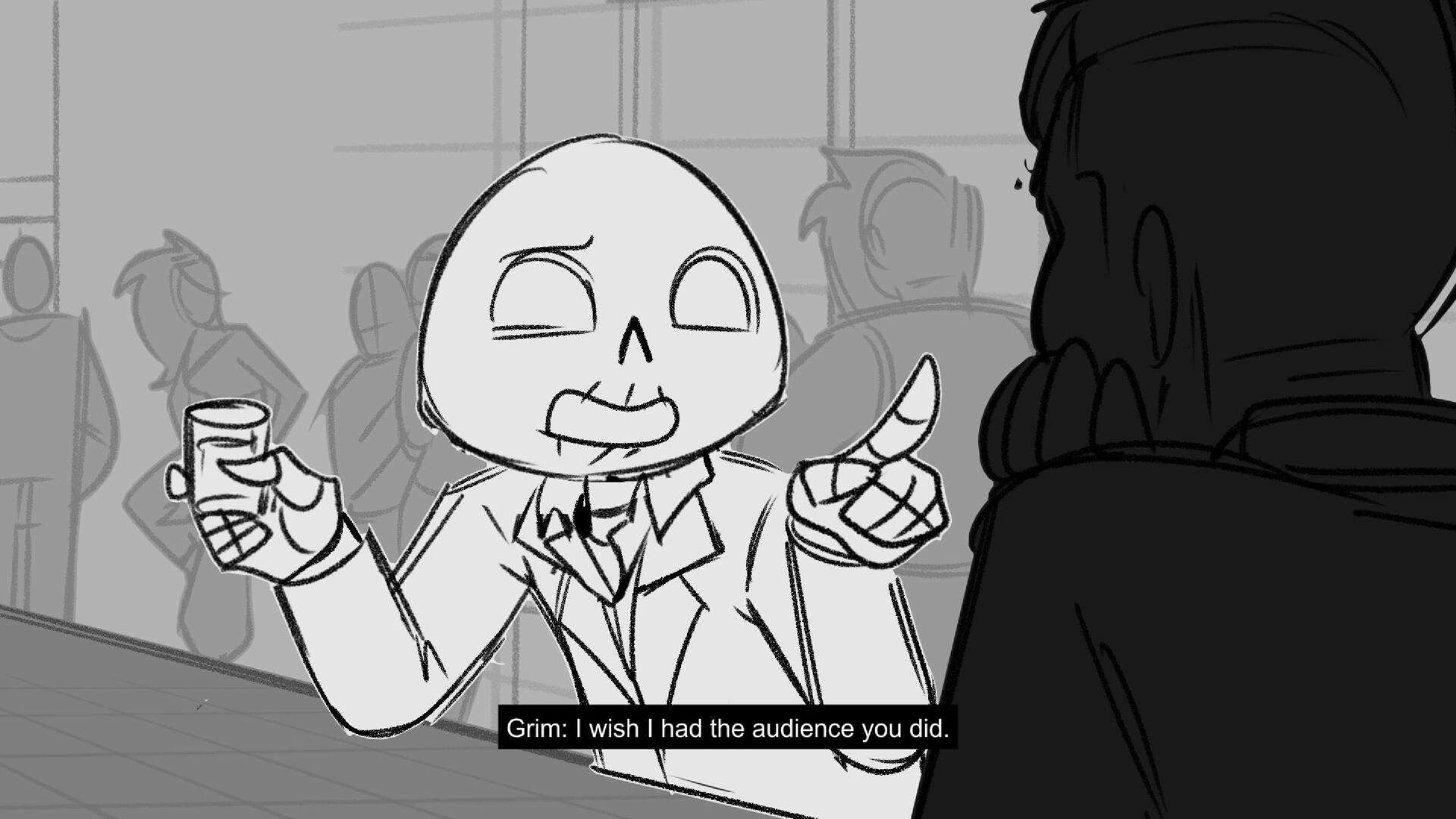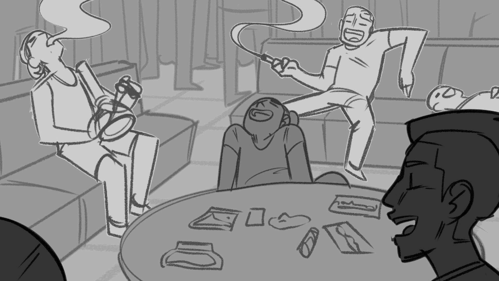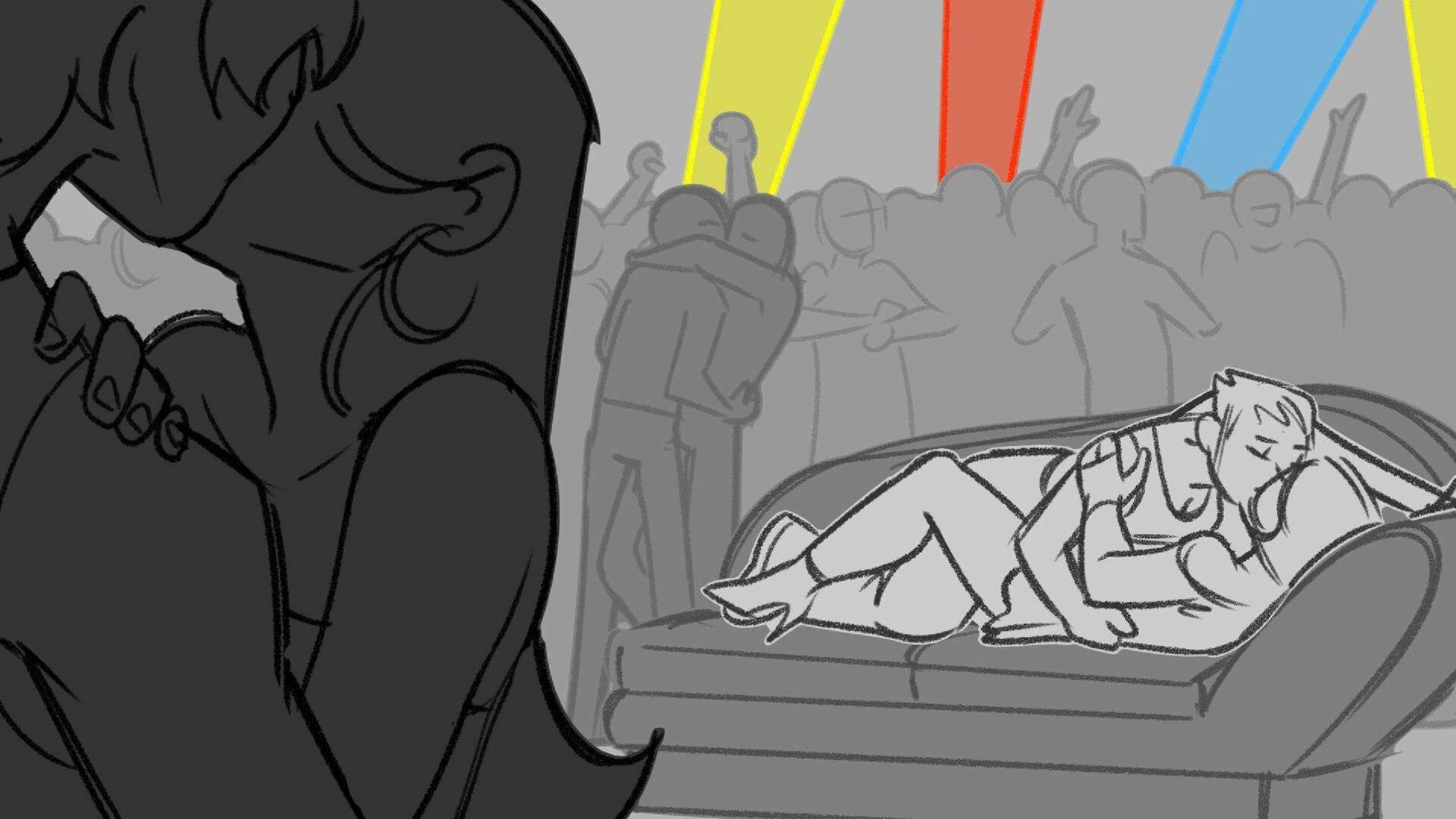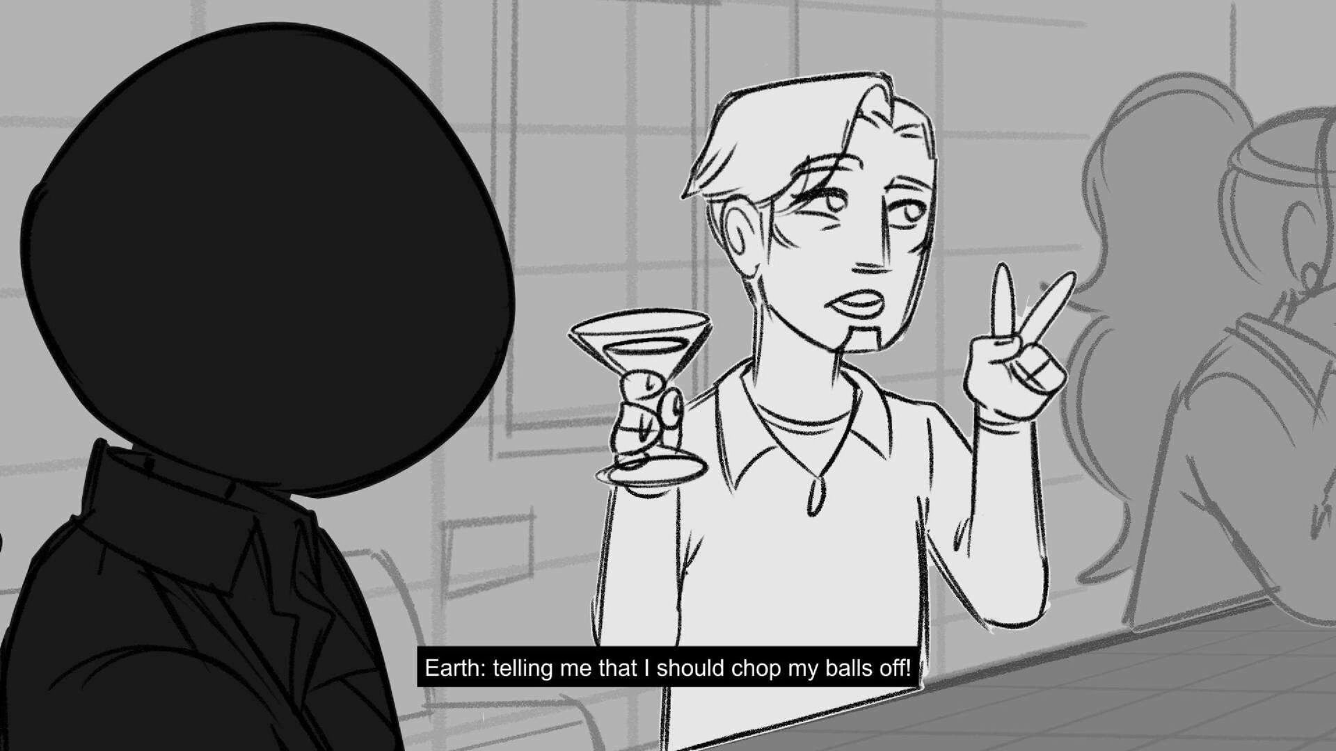Sequence of the influencers, characters having fun, and tiring themselves out at a club. And a heart-felt conversation between Grim and Earth.