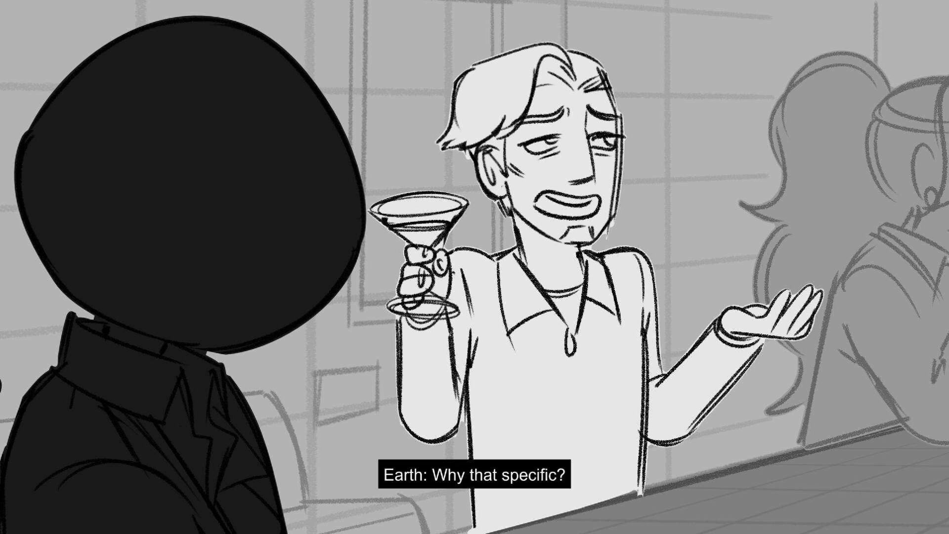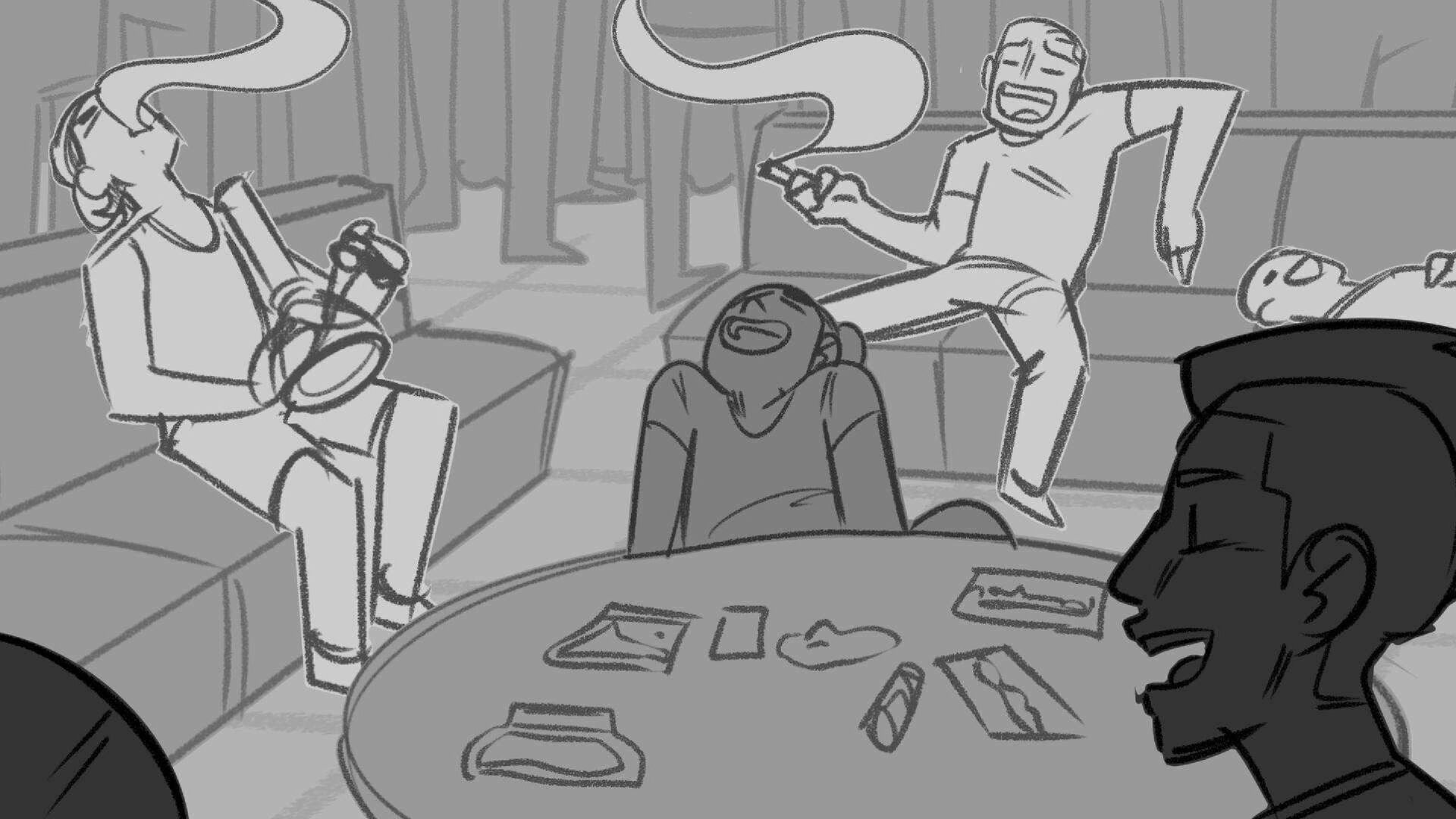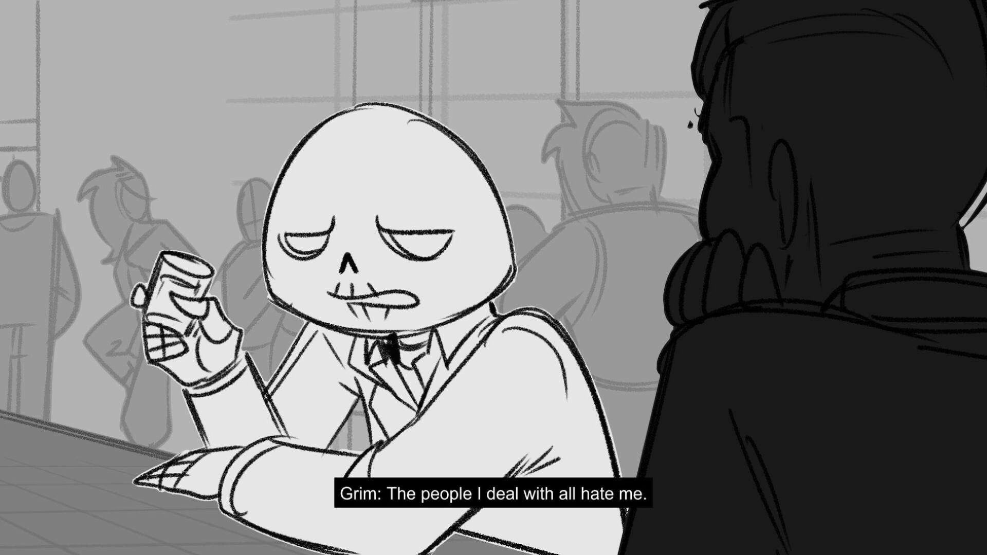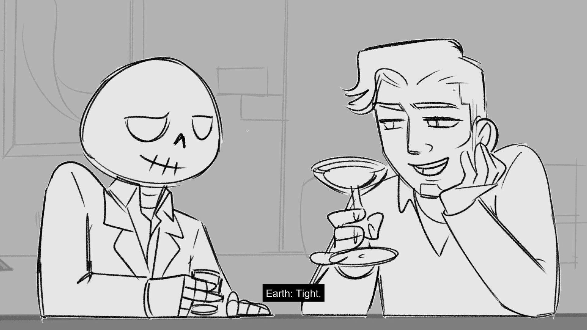 Sequence of the influencers, characters having fun, and tiring themselves out at a club. And a heart-felt conversation between Grim and Earth.