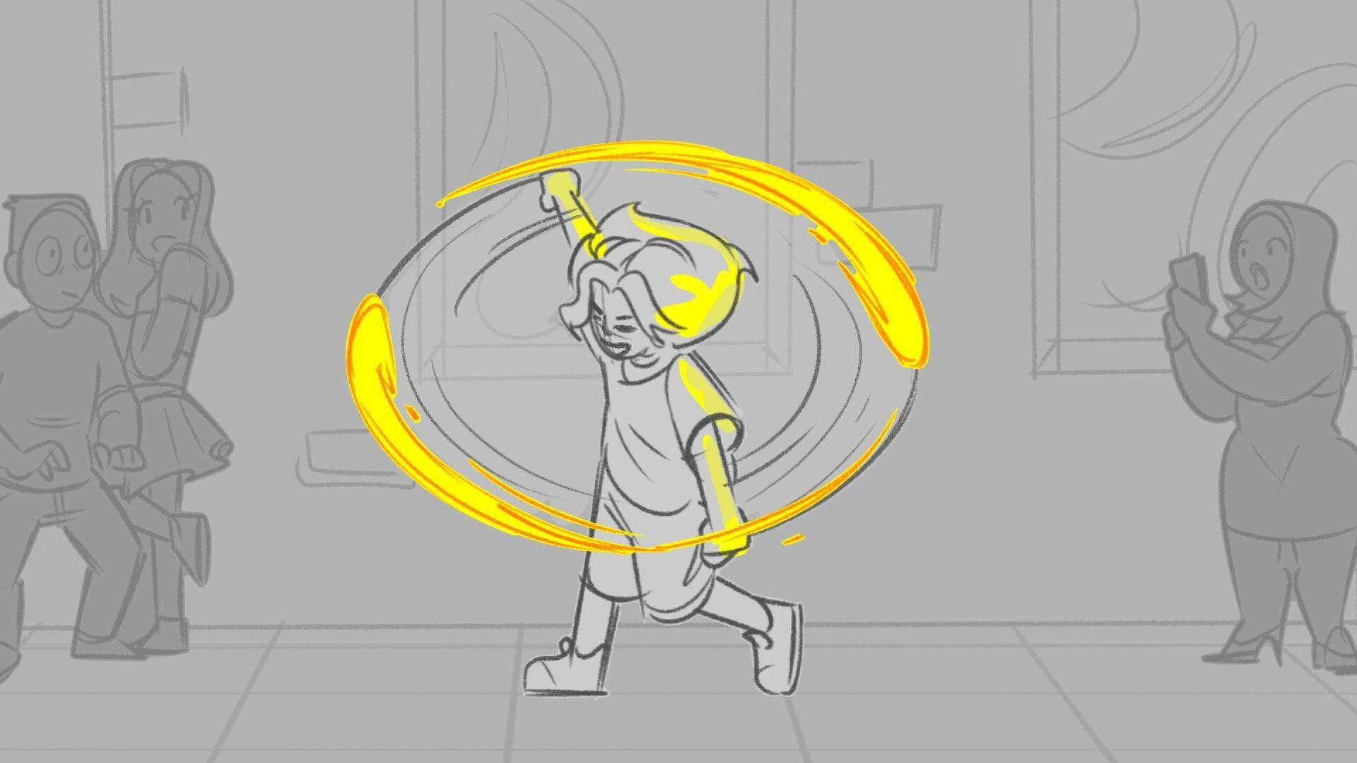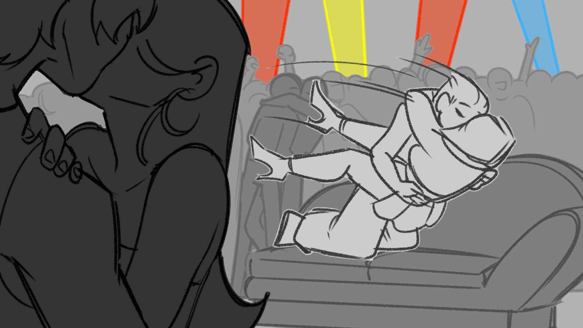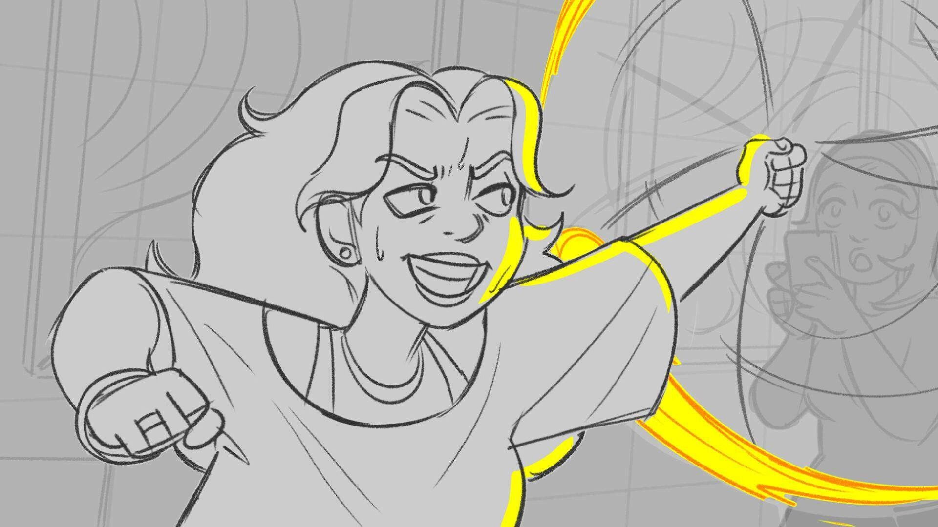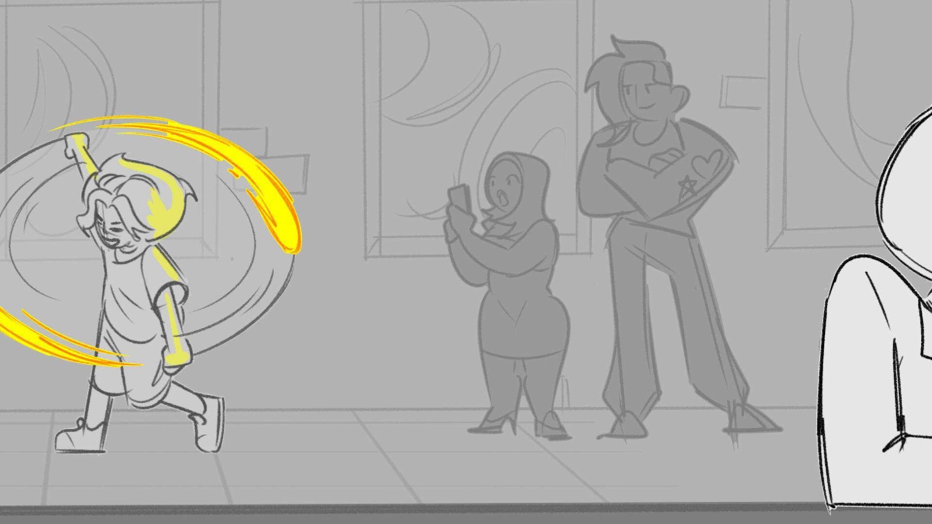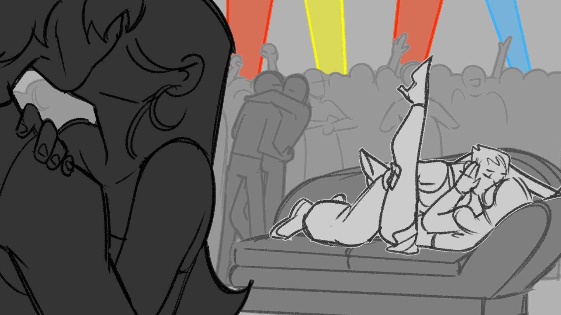 Sequence of the influencers, characters having fun, and tiring themselves out at a club. And a heart-felt conversation between Grim and Earth.