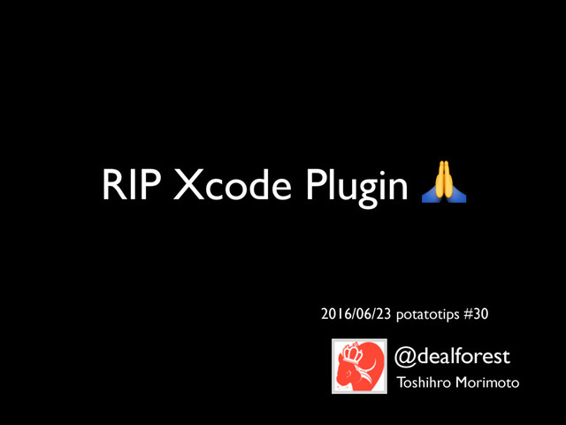 RIP Xcode Plugin 2016/06/23 potatotips #30 @dealforest Toshihro Morimoto