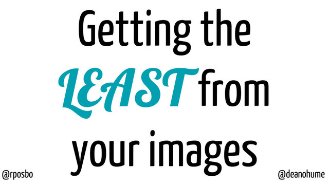 bigger image than you need just because you can set the width and height in HTML. If you need: <img width="100" height="100" src="mycat.jpg" alt="My Cat" /> then your image (mycat.jpg) should be 100x100px rather than a scaled down 500x500px image.”