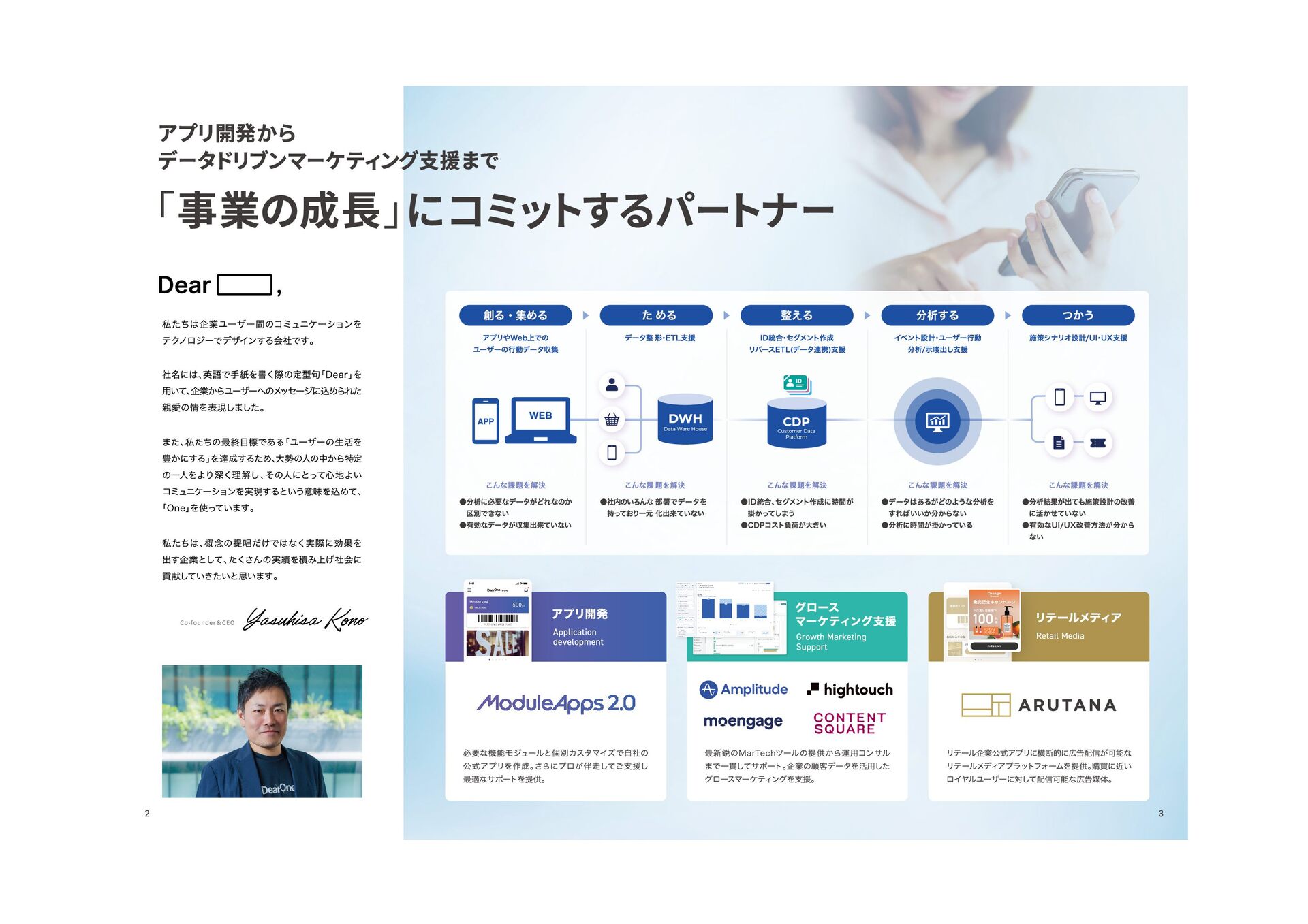 株式会社DearOneは、アプリ開発からデータドリブンマーケティング支援まで「事業の成長」にコミットするパートナーです。