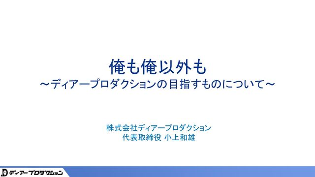 俺も俺以外も ~ディアープロダクションの目指すものについて~ 株式会社ディアープロダクション 代表取締役 小上和雄