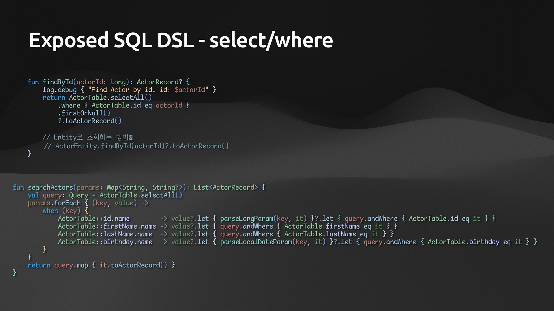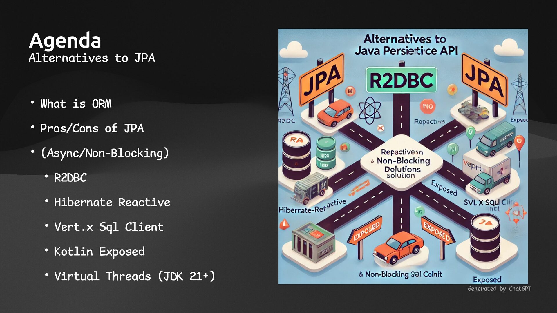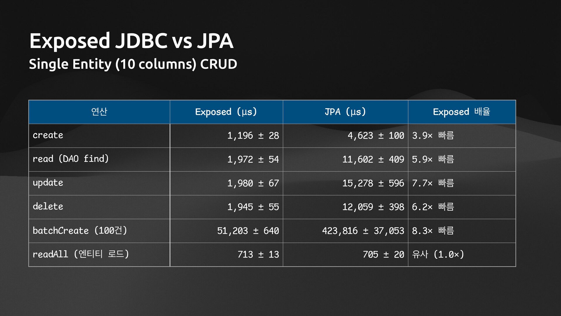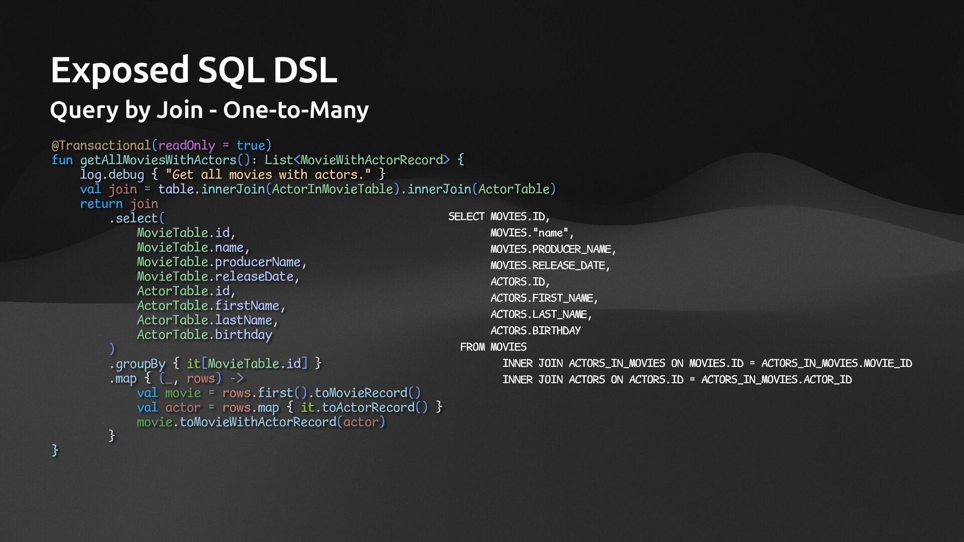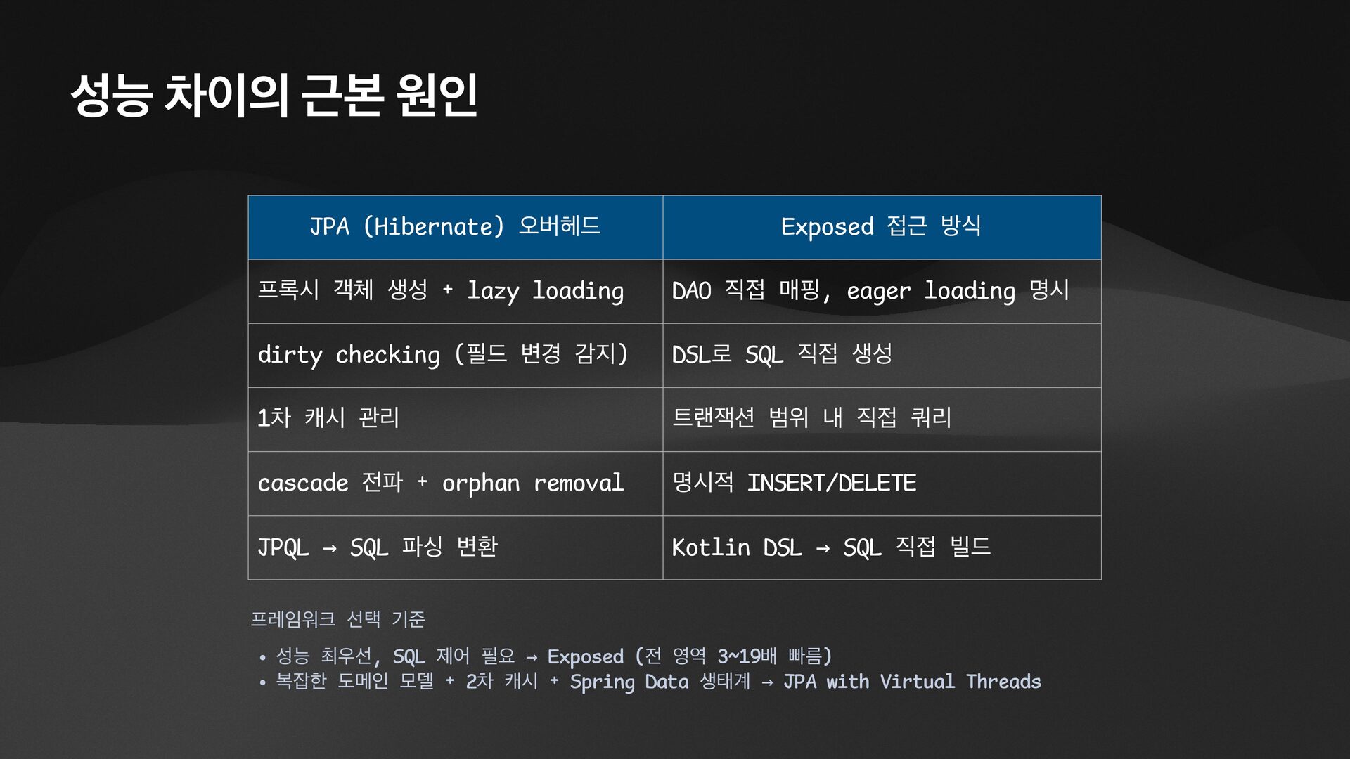 • Lightweight ORM • Provide two layers of data access • Typesafe SQL wrapping DSL • Lightweight Data Access Object • Support Coroutines in JDBC (CPU-Bounded Async/Non-Blocking) • Use JDBC with Virtual Threads • Support R2DBC (IO-Bounded Async/Non-Blocking)