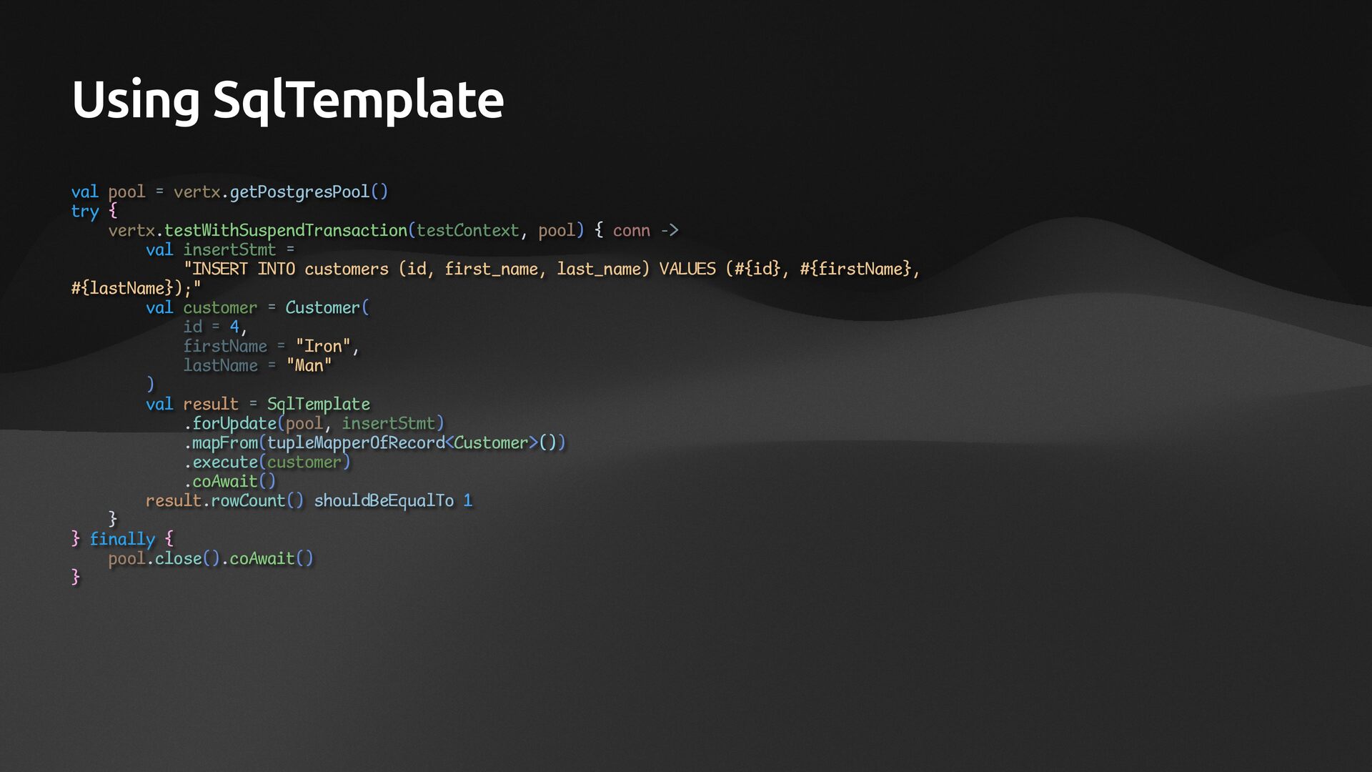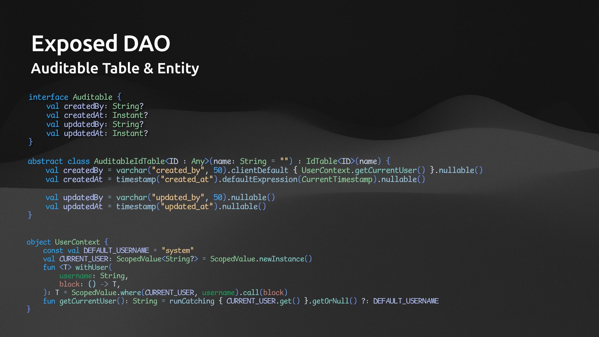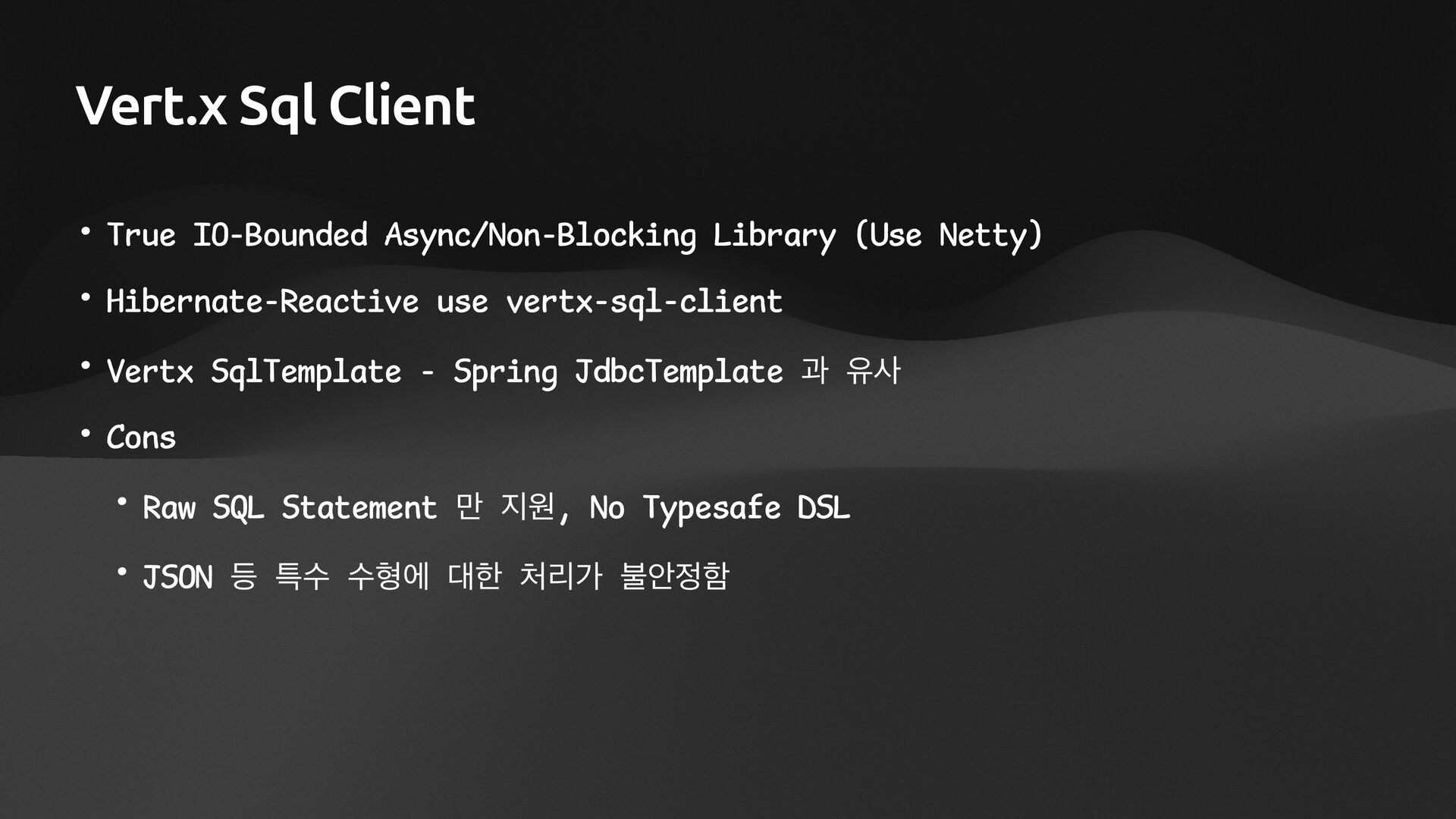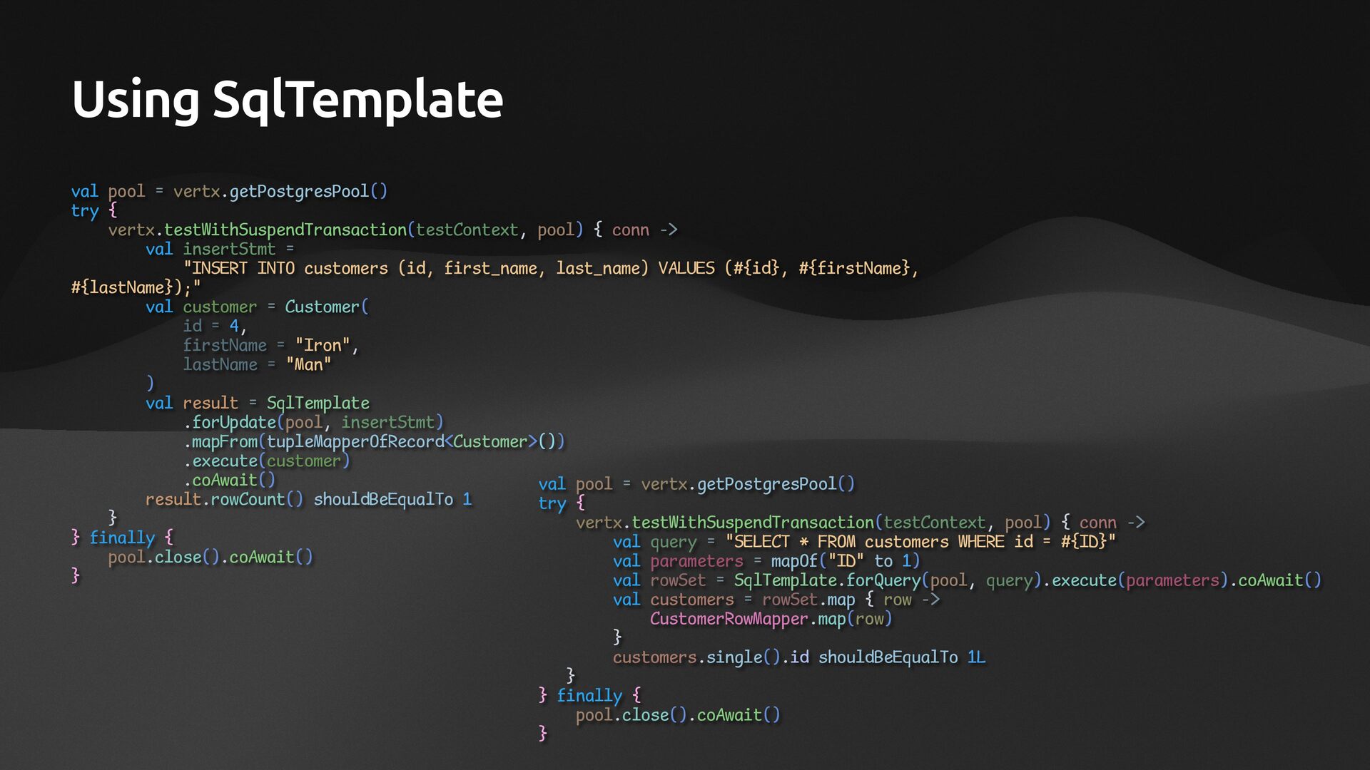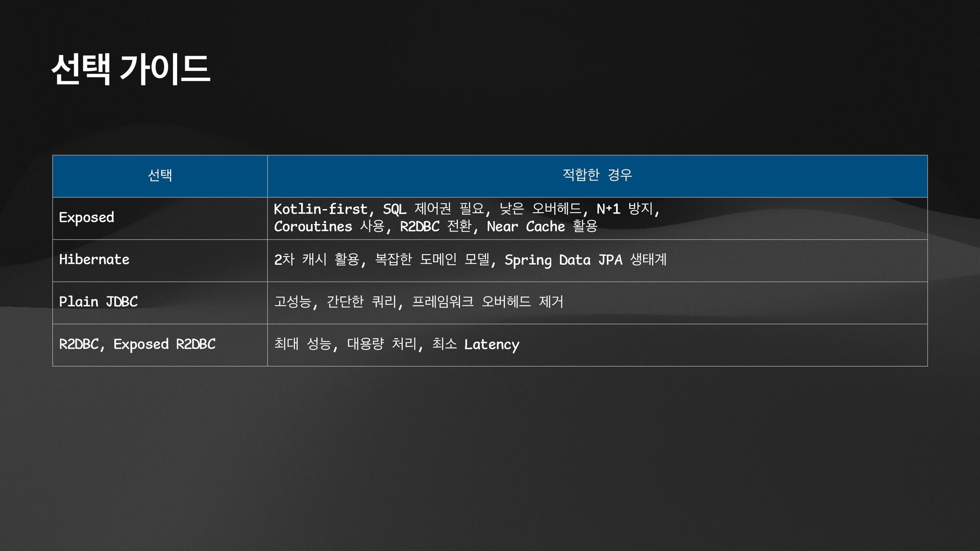 • Lightweight ORM • Provide two layers of data access • Typesafe SQL wrapping DSL • Lightweight Data Access Object • Support Coroutines in JDBC (CPU-Bounded Async/Non-Blocking) • Use JDBC with Virtual Threads • Support R2DBC (IO-Bounded Async/Non-Blocking)