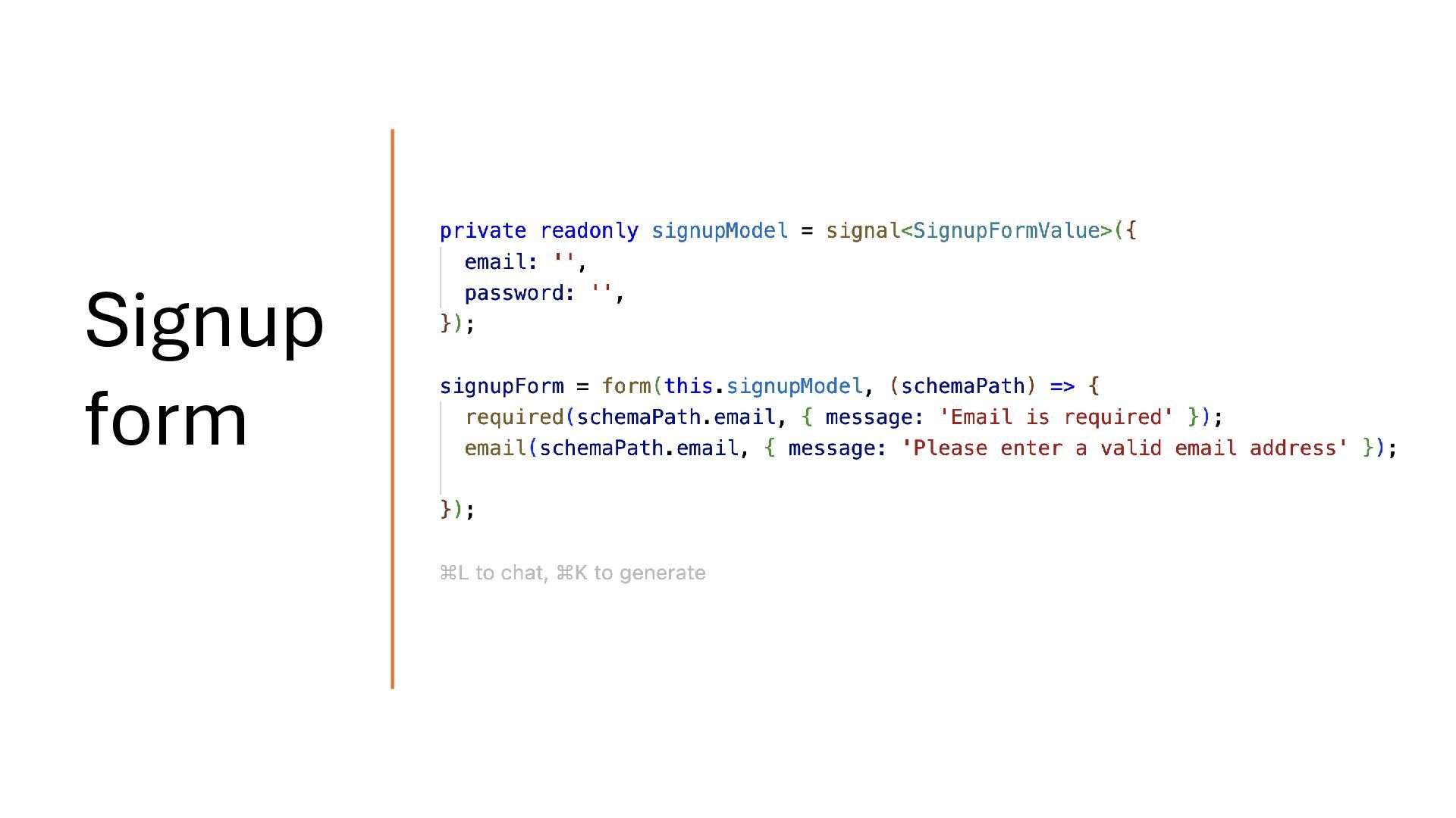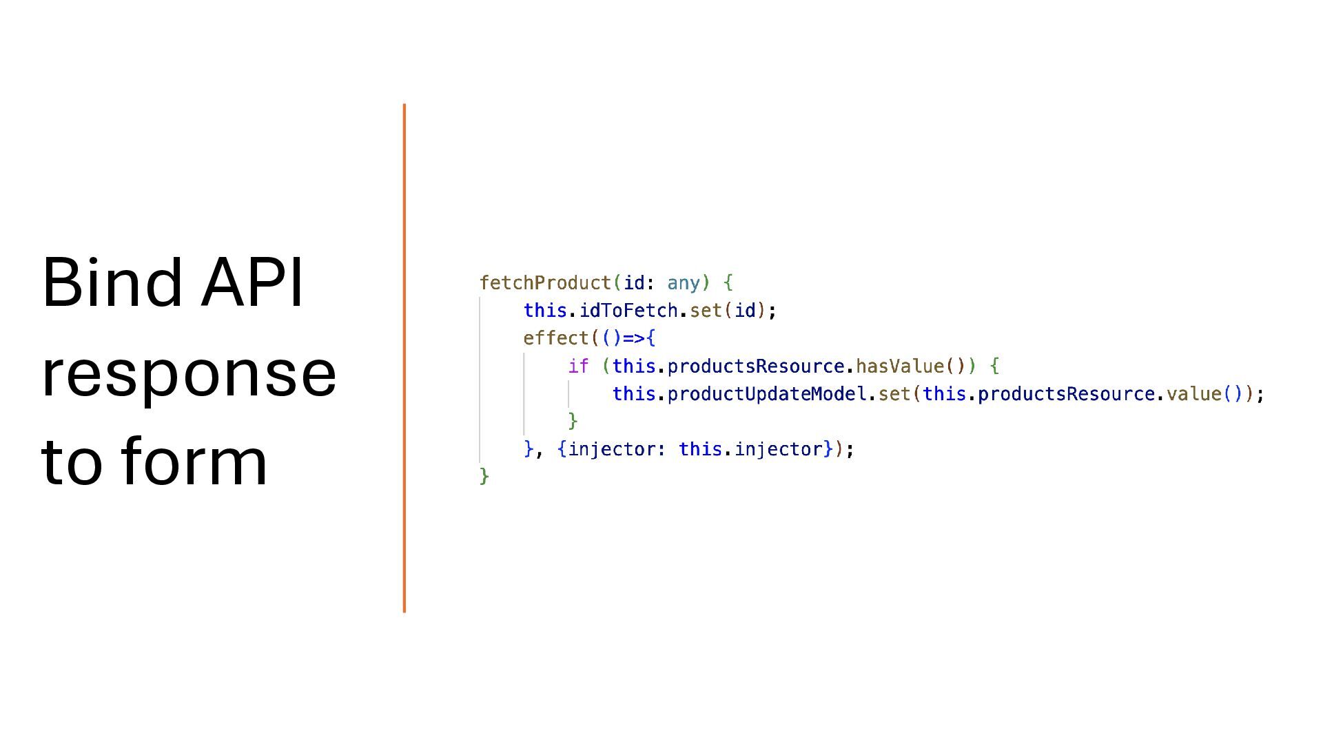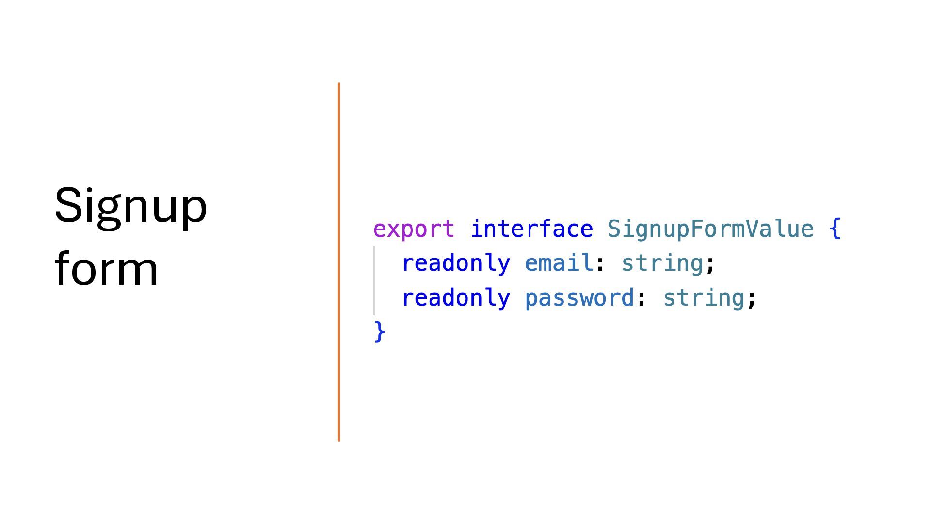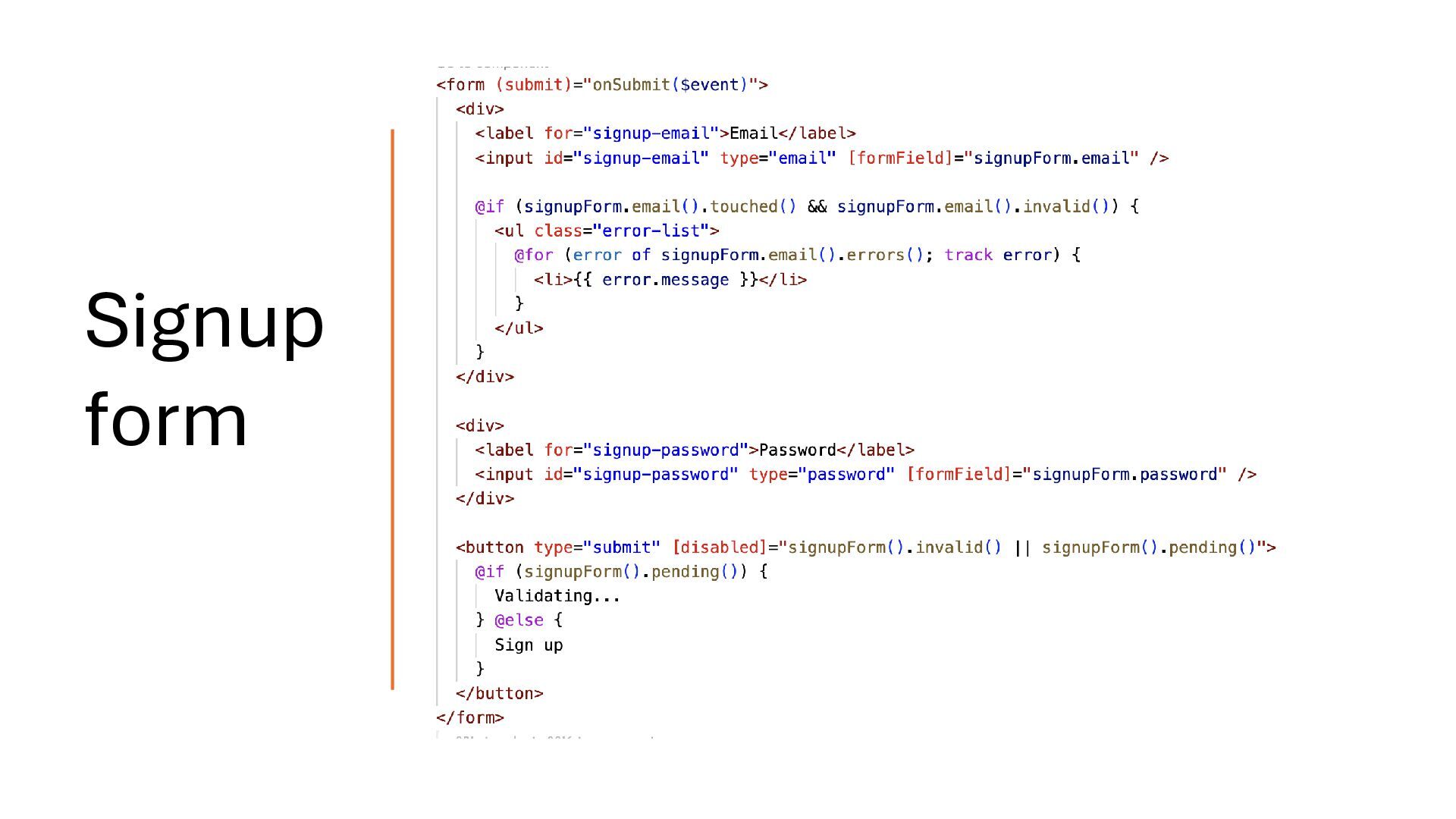 concepts and should be treated separately. Your API response may map directly to the domain model, but you should define a dedicated form model when working with signal-based forms. Form Model