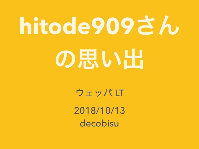 hitode909͞Μ ͷࢥ͍ग़ Σού LT 2018/10/13 decobisu