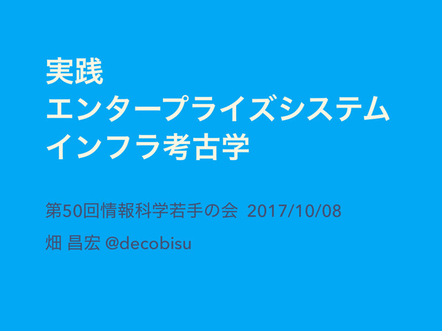 ࣮ફ ΤϯλʔϓϥΠζγεςϜ Πϯϑϥߟݹֶ ୈ50ճใՊֶएखͷձ 2017/10/08 ാ ণ @decobisu