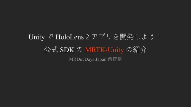 【Mixed Reality Dev Days Japan 前夜祭】(