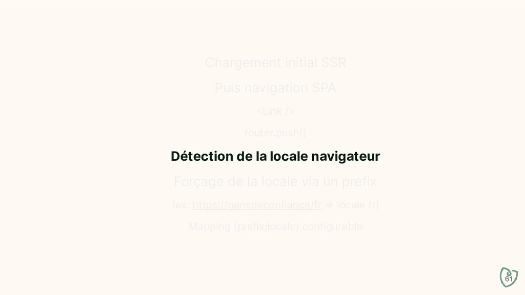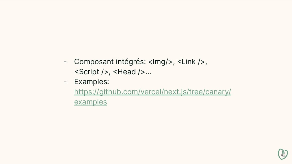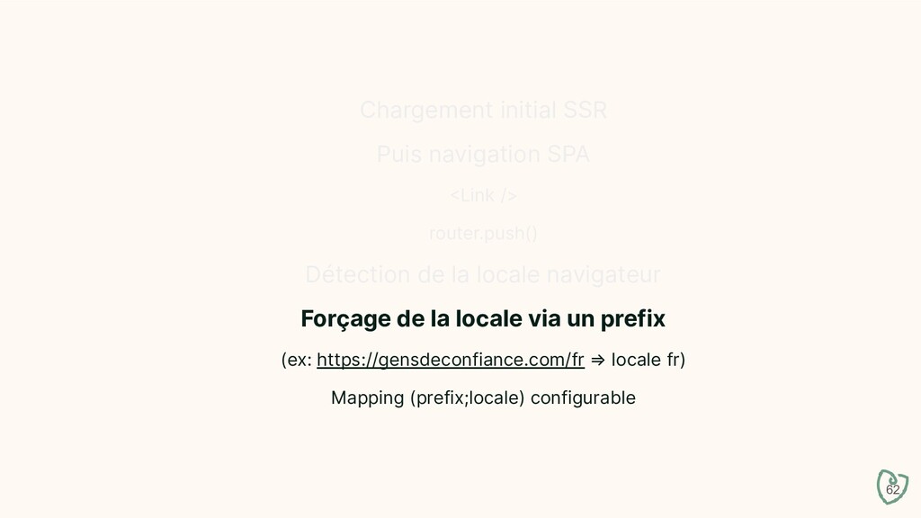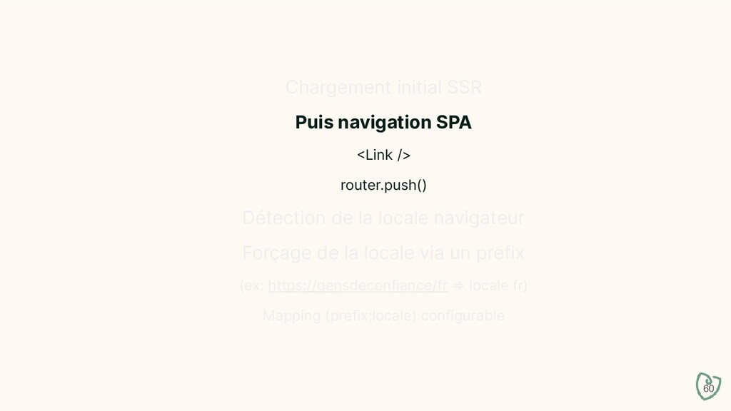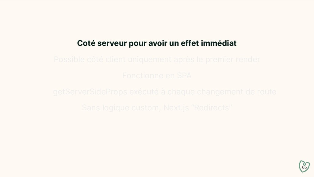 uniquement après le premier render Fonctionne en SPA getServerSideProps exécuté à chaque changement de route Sans logique custom, Next.js “Redirects” 65