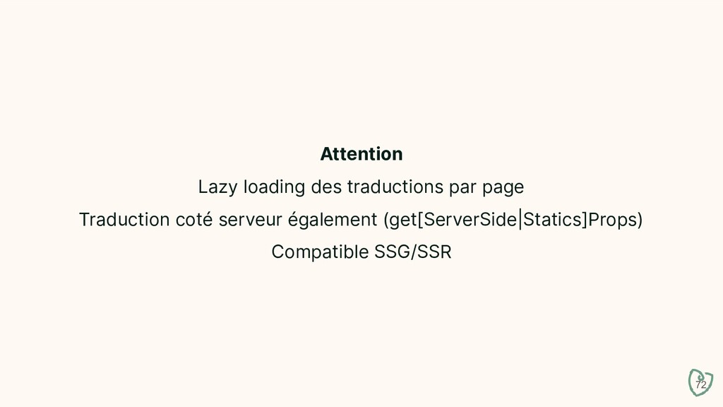 risquée Un getServerSideProps unique désactive le SSG définitivement High order function redondante si on veut le SSG Next.js ne distingue pas le mode de navigation pas de cache possible (via context ou autre) en mode SPA pas de cache sur les “page props” (shallow routing possible) Cache applicatif Node.js compliqué (et non souhaitable) 91