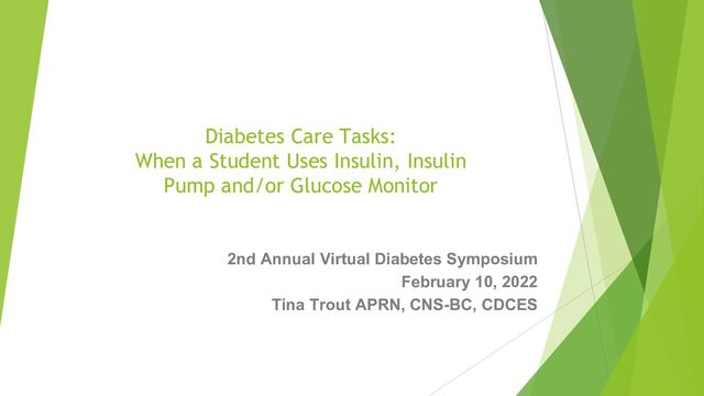 This program will provide information on basic functions of insulin pump therapy. There will be a review of pumps and continuous glucose monitor options including visual screen displays for pumps and CGM devices. Hypoglycemia treatment options explored. Understanding of student/parent responsibilities and survival kits for school use when using a pump.
