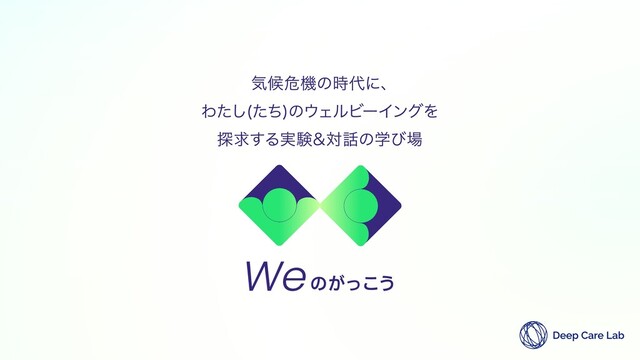 本日のながれ 19:00-19:10 Deep Care Labについての紹介 19:10-19:25 Weのがっこう説明会 19:25-19:30 ゲストのご紹介 19:30-20:15