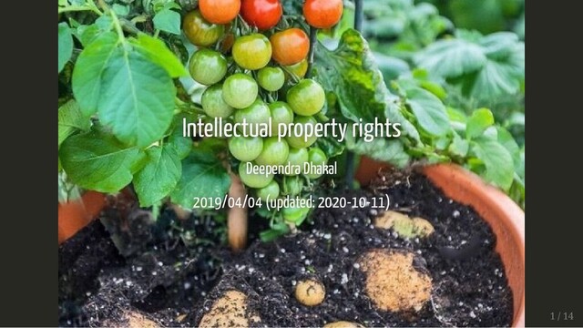 have a known biological role, as well as processes and methodologies, such as tissue culture protocols or transformation methods. - Patent can be applied for if (in general): an 'invention' is not patented already, if you can demonstrate a significant novel step, and it is 'not obvious' Clearly these have definitions (and interpretations of definitions) attached to them So increasingly, if researchers make any sort of breakthrough they will tend to consider patenting to protect their intellectual property (IP). In other words, they can potentially capture value from exploiting that technology either directly, by exploiting it and preventing others from doing so, or indirectly, by licensing others to allow them to use the technology, perhaps subject to royalty payments. For commercial application, in the very broadest sense, you have to come to a written agreement with the patent holder. If anyone makes the same parent cross combination and selects a 'different' cultivar from the resulting progeny, they would equally be in infringement of the patent rights. 12 / 14