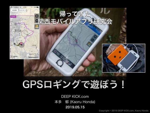 GPSロギングのススメ。スマホは高性能なGPSを搭載しています。これを活用しないともったいない。いつでも、どこでも、スマホで地理空間情報をガンガン活用しましょう。登山用GPSログアプリ「SkyWalking」開発者が、旅行やアウトドア活動で楽しめるGPSロギングの仕組みと、GPSデータの活用事例を、5分間のライトニングトークで紹介します。