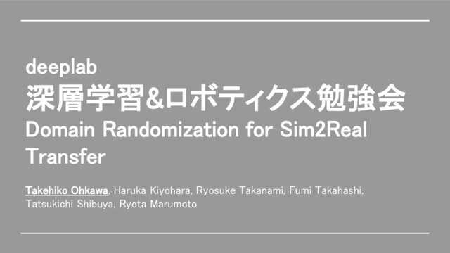 変数例 • Position, shape, and color of objects • Material texture • Lighting condition • Random noise added to images • Position, orientation, and field of view of the camera in the simulator • 主に,ロボット把持のタスクで活用される [Tobin et al., 2017]