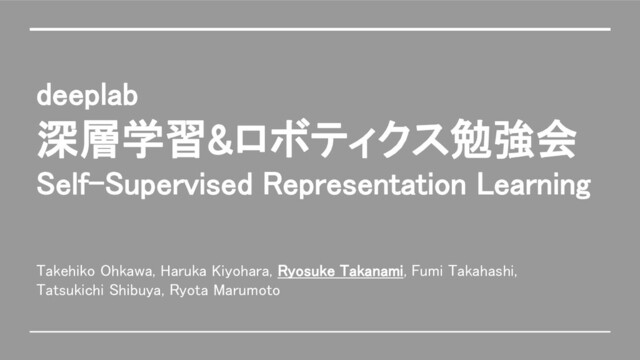 unsupervised learning using temporal order verification. ECCV, 2016. • Carl Vondrick et al. Tracking emerges by colorizing videos. ECCV, 2018. • Eric Jang et al. Grasp2Vec: learning object representations from self-supervised grasping. CoRL, 2018. • Pierre Sermanet et al. Time-contrastive networks: self-supervised learning from video. CVPR, 2018. • Ashvin Nair et al. Visual reinforcement learning with imagined goals. NeurIPS, 2018. • Carles Gelada et al. DeepMDP: learning continuous latent space models for representation learning. ICML, 2019. • Amy Zhang et al. Learning invariant representations for reinforcement learning without reconstruction. arXiv, 2020.