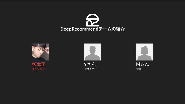 DeepRecommend チームの紹介 杉本迅 Y さん M さん エンジニア デザイナー 営業