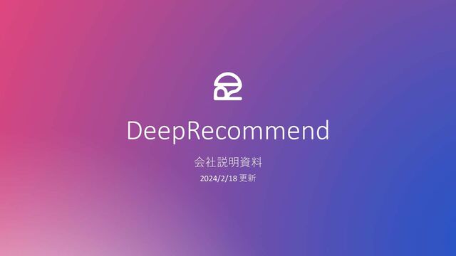 DeepRecommend 会社説明資料 2024/2/18 更新