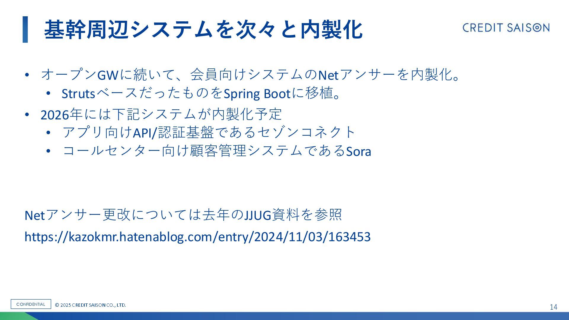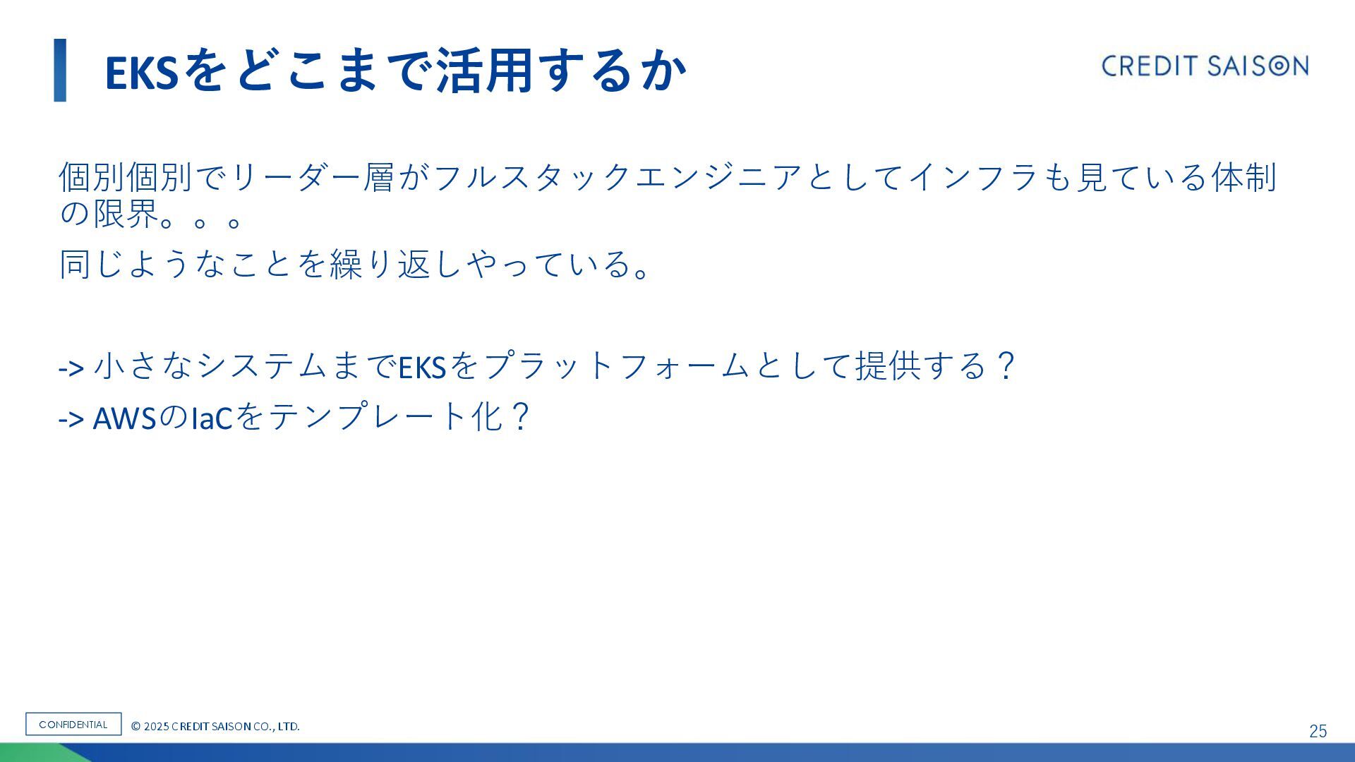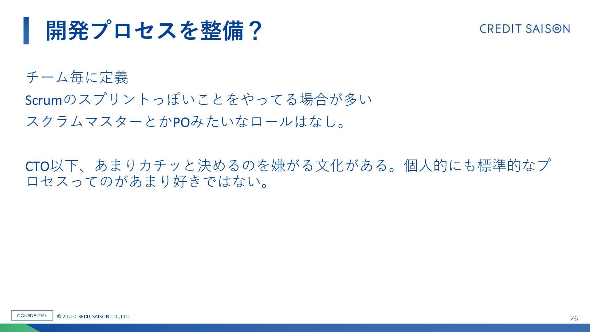 これまで構築してきたシステムを概観するとともに、組織の大規模化に伴って、さまざまな課題があり、共通プラットフォームや分業、プロセスなどの必要性も見えてきました。