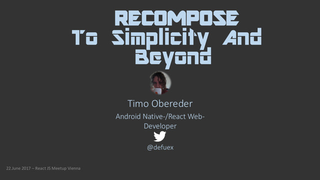 A presentation about the basics of HoC, Presentational Layers, Container Components, but mostly recompose and how to structure projects in a more functional way.
