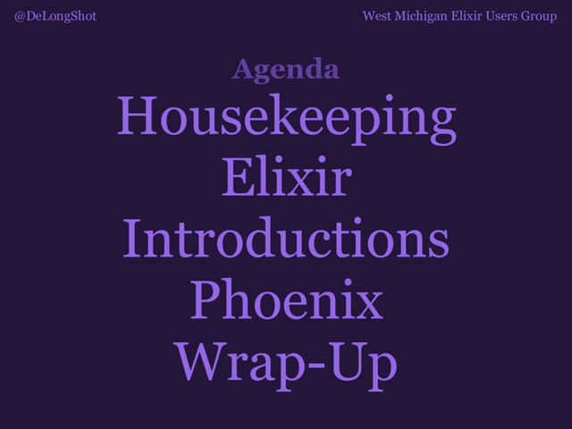 This presentation is from the inaugural meetup of the West Michigan Elixir Users Group. It's a quick overview of Elixir and Phoenix.
