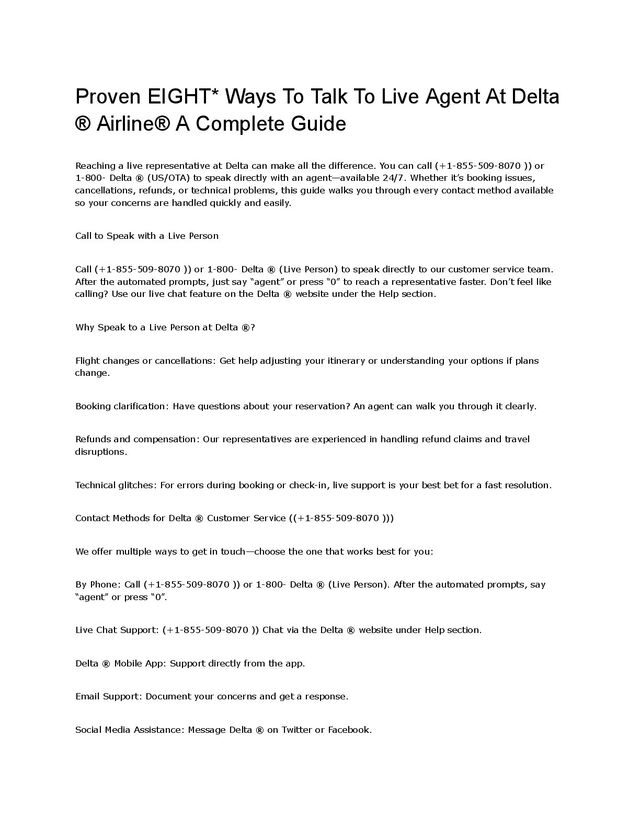 Reaching a live representative at Delta can make all the difference. You can call (+1-866-414→5005)) ☎️📞 or 1-800- Delta® (US/OTA) to speak directly with an agent—available 24/7. Whether it’s booking issues, cancellations, refunds, or technical problems, this guide walks you through every contact method available so your concerns are handled quickly and easily.