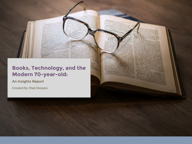 a modern 70-year at the library? Who were the participants that informed the insights in the report? • Library patrons • Librarians • Other library staff • An avid reader and budding technology enthusiast • My own feelings and observations via an empathy exercise