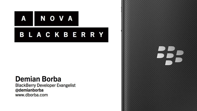 Uma jornada começando pelo DNA da empresa, chegando sua nova fase com o novíssimo BlackBerry 10. Desde o início de 2012, a BlackBerry tem um novo CEO, novas estratégias e uma nova plataforma com características muito especiais. Durante a apresentação são mostrados dados importantes sobre a relação com desenvolvedores, dados do cenário mobile atual, suas oportunidades e desafios.