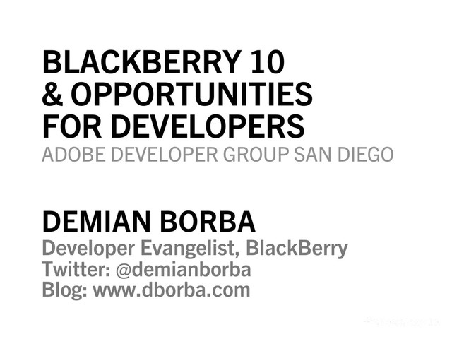 BLACKBERRY 10 & OPPORTUNITIES FOR DEVELOPERS ADOBE DEVELOPER GROUP SAN