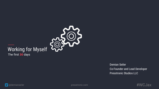 led me to start my own business, and my experiences, both good and bad, over the first 30 days of working for myself. The Backstory The Wrong The Right The Lessons The Q&A presstronic.com #WCJax 1 5 4 3 2 @demianseiler Nobody gets anywhere by accident.