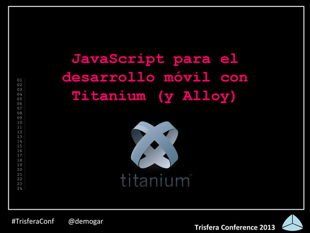 a través de exploradores – Server: Node.JS – Móvil: Titanium Appcelerator – Juegos: Melon, Jaws, Babylon, Impact … • Un lenguaje sencillo: – “Es posible hacer mucho sin saber tanto del lenguaje o programación. Se vuelve aún mejor cuando sabes que estás haciendo” — Douglas Crockford