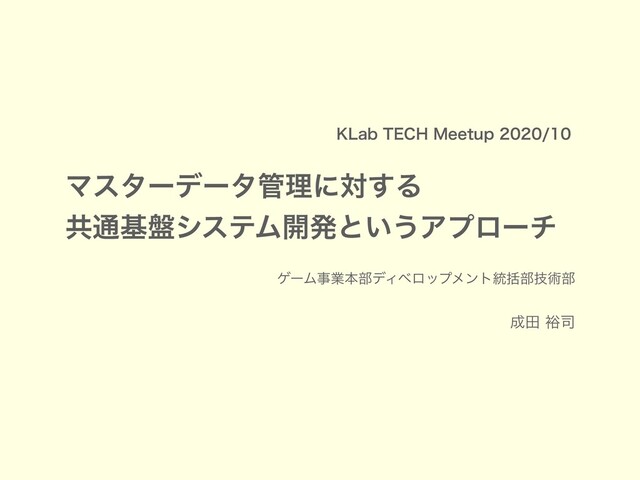 タイトルごとに行なっていたマスターデータ管理フローを共通基盤システムとして取り組むアプローチについて、選択した経緯や現状、開発プロダクトついて紹介します