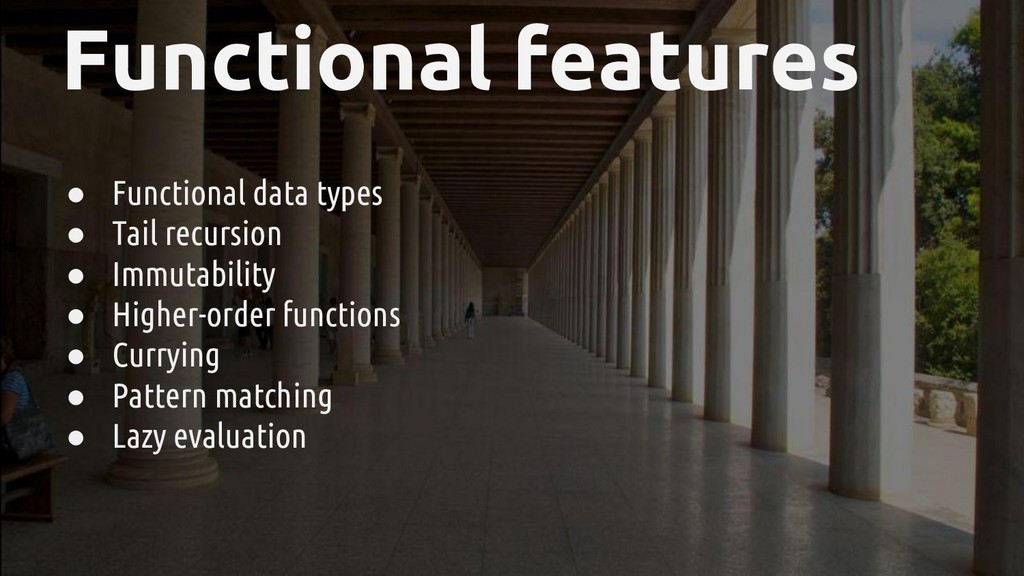 An overview of Scala, a brief look at its functional features including higher order functions, monads, currying etc.