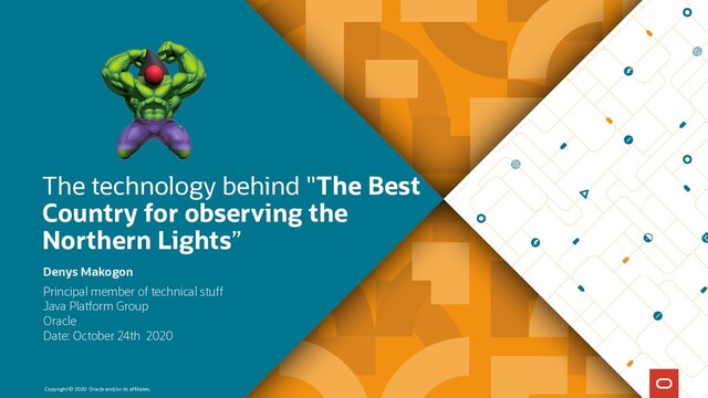"The Best Country for observing the Northern Lights” Principal member of technical stuff Java Platform Group Oracle Date: October 24th 2020 Denys Makogon