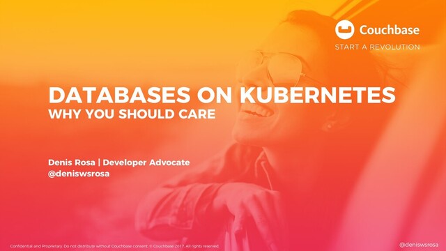 Couchbase 2017. All rights reserved. 37 Results https://blog.couchbase.com/performance-certification-of-couchbase-server-5-5-on-kubernetes-platform/ Workload A Update heavy workload: Mix of 50/50 reads and writes Workload E Short ranges: Short ranges of records are queried, instead of individual records. ~0% No substantial difference <10%* Performance penalty * This is more than one year old test, since then some improvements have been made to docker