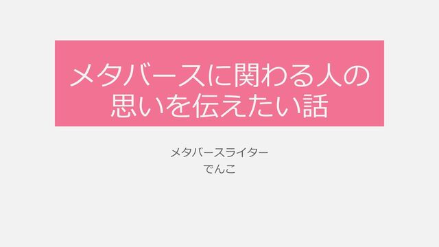 メタバースに関わる人の 思いを伝えたい話 メタバースライター でんこ