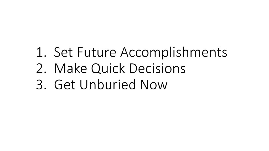 • Annual execu*ve team offsite 2 days • Assess past year • Set next year and 3 year plans • Check-‐in on culture, staffing, succession plans • Quarterly execu*ve team mee*ng 8 hours • 1 Page Plan Scorecard • Upcoming Quarter: Hot issues, #1 + 2 • Monthly execu*ve team mee*ng 4 hours • Progress/roadblocks • Weekly execu*ve team mee*ng 1 hour • Deliverables Equals 3 weeks of the year Exec Team: 8% of their *me driving business