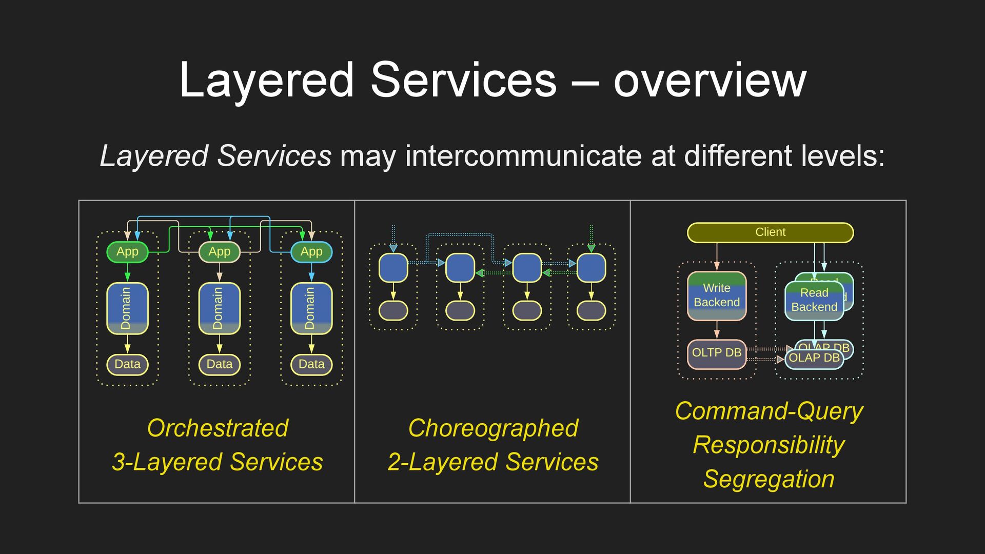 Command-Query Responsibility Segregation Layered Services may intercommunicate at different levels:
