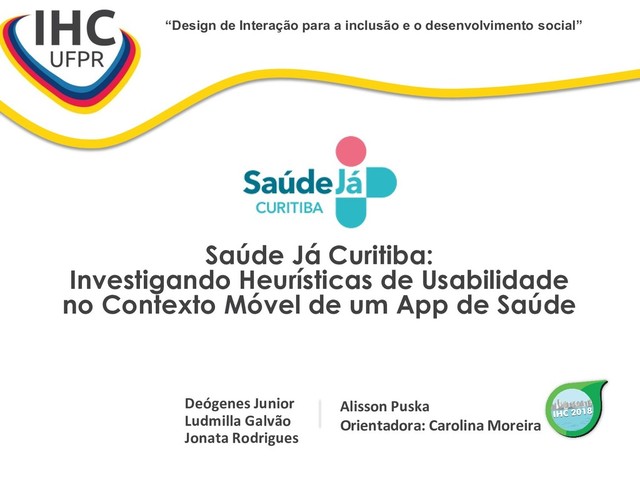 Apresentação referente à premiação na Competição de Avaliação da XVII edição do Simpósio Brasileiro sobre Fatores Humanos em Sistemas Computacionais (IHC 2018).