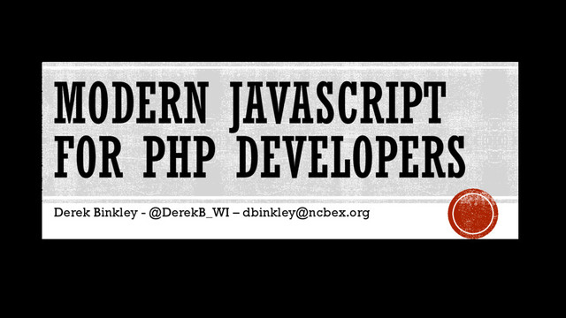 Are you scared by JavaScript? Have you used JQuery but struggle with adding interactive features to your web page? This talk will help you understand how to use JavaScript effectively in your existing web pages and PHP applications. Let's explore different ways to write and structure your JavaScript code and introduce the model-view-view model pattern as a complement to the model view controller pattern often used in PHP to create more reusable, understandable, and testable code