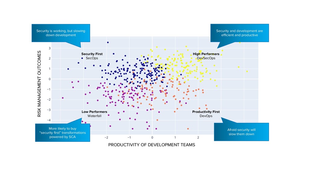 are efficient and productive Security is working, but slowing down development Afraid security will slow them down More likely to buy “security first” transformations powered by SCA High Performers DevSecOps Low Performers Waterfall Security First SecOps Productivity First DevOps