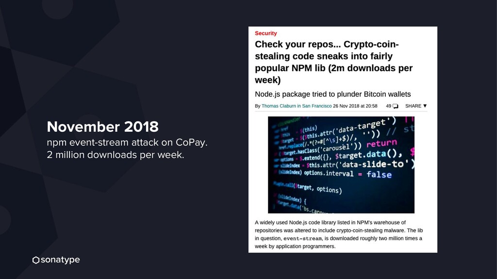 related to open source components in the 2019 survey 14% suspect or have verified a breach related to open source components in the 2014 survey source: DevSecOps Community Survey 2014 and 2019