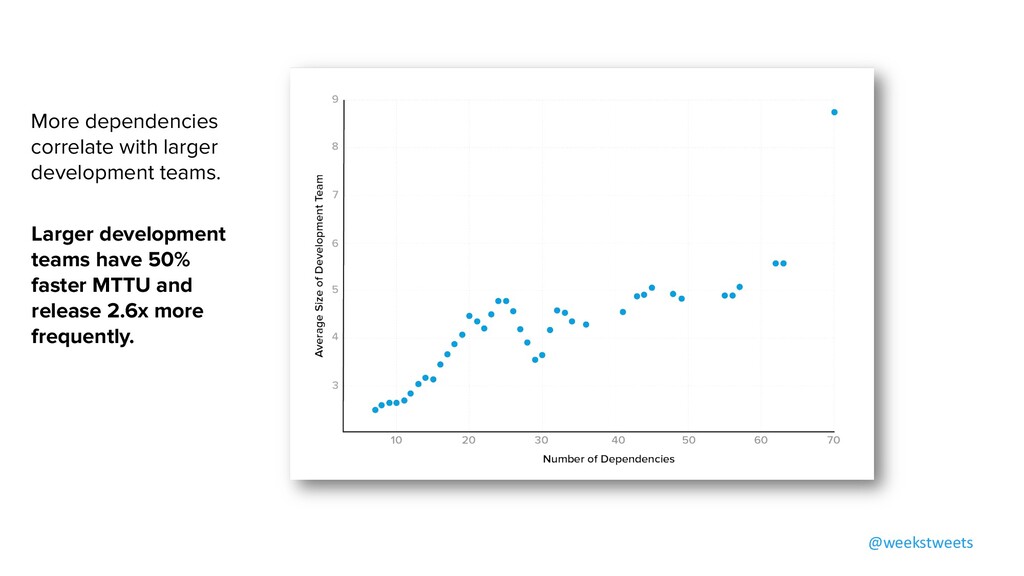 15. More dependencies correlate with larger development teams. @weekstweets Larger development
