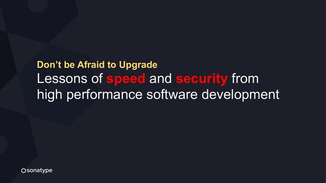are efficient and productive Security is working, but slowing down development Afraid security will slow them down More likely to buy “security first” transformations powered by SCA High Performers DevSecOps Low Performers Waterfall Security First SecOps Productivity First DevOps