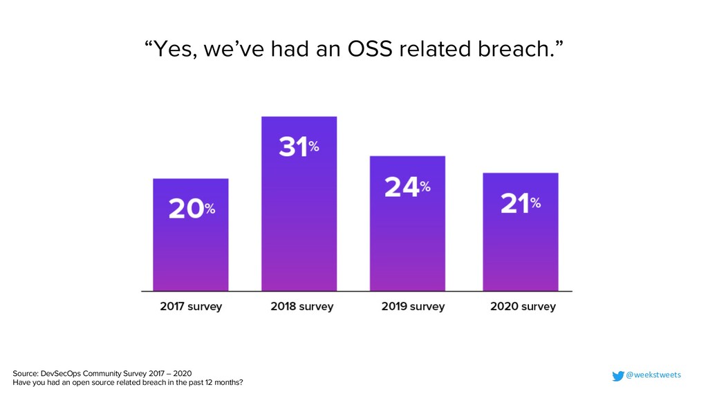 Survey 2017 – 2020 Have you had an open source related breach in the past 12 months? @weekstweets