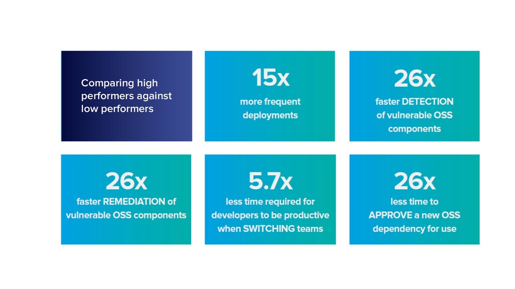 1.5x more likely to be expanding use of OSS components Source: Accelerate: State of DevOps 2019