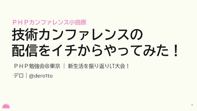 技術カンファレンスの 配信をイチからやってみた! PHP勉強会@東京 | 新生活を振り返りLT大会! デロ|@dero1to PHPカンファレンス小田原 1
