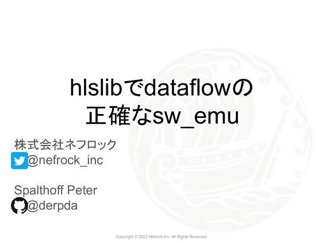 Copyright © 2022 Nefrock.Inc. All Rights Reserved. hlslibでdataflowの 正確なsw_emu 株式会社ネフロック